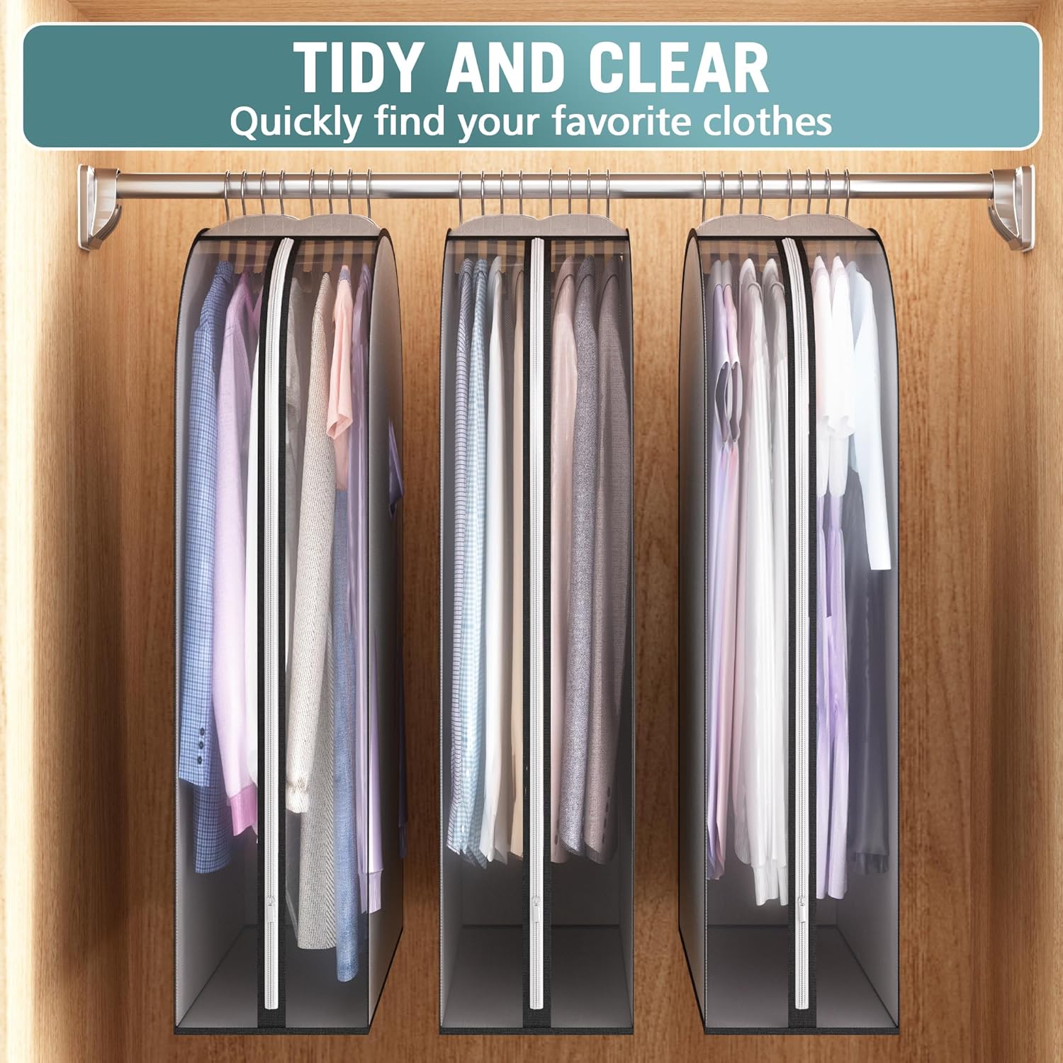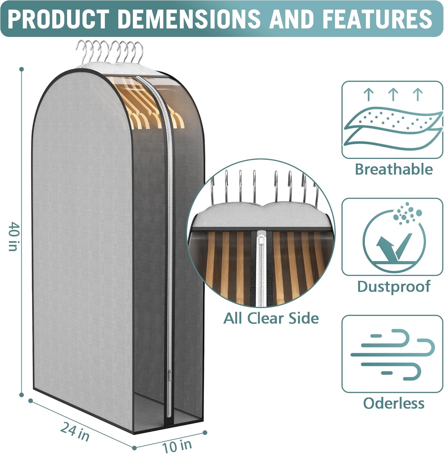 - 10” Gusseted & 3 Pack: Each garment bag can hold 10 suit or 8 winter coats without wrinkles. 40 inch length is perfect for storing shirts, jackets, Trench coat and short skirt, etc