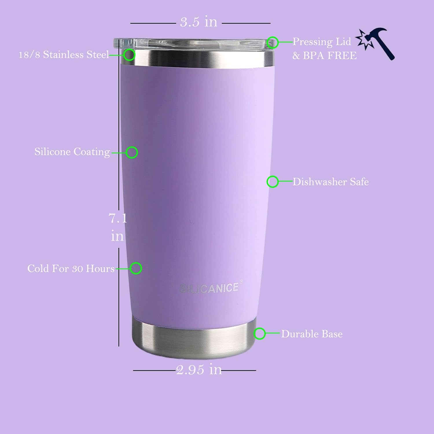 - SILICANICE MACSLIDER:The Only Drink Lid That Uses The Power Of Ball Plunger To Keep Your Water, Beer,Cola,Coffee,Or Favorite Drink On Lock,durable Tritan metrail lid,Sweat Proof, No Condensation,Keep 30 Hours Iced,8 Hours Cold,4 Hours Hot.MacSlider Lid Is not Leakproof with Hot Water But Spillproof,Ice Water is Leakproof.