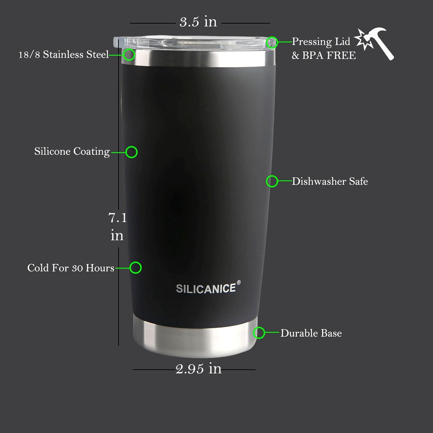 - 100% BPA-Free,Dishwasher Safe:The Only Silicone Coating With Soft Touch Sense,No Freezing Hands,No Dew Design Make Sure Your Hands Stay Dry,Drinking Hole On The Top For Easy Swigging,Easy To Clean