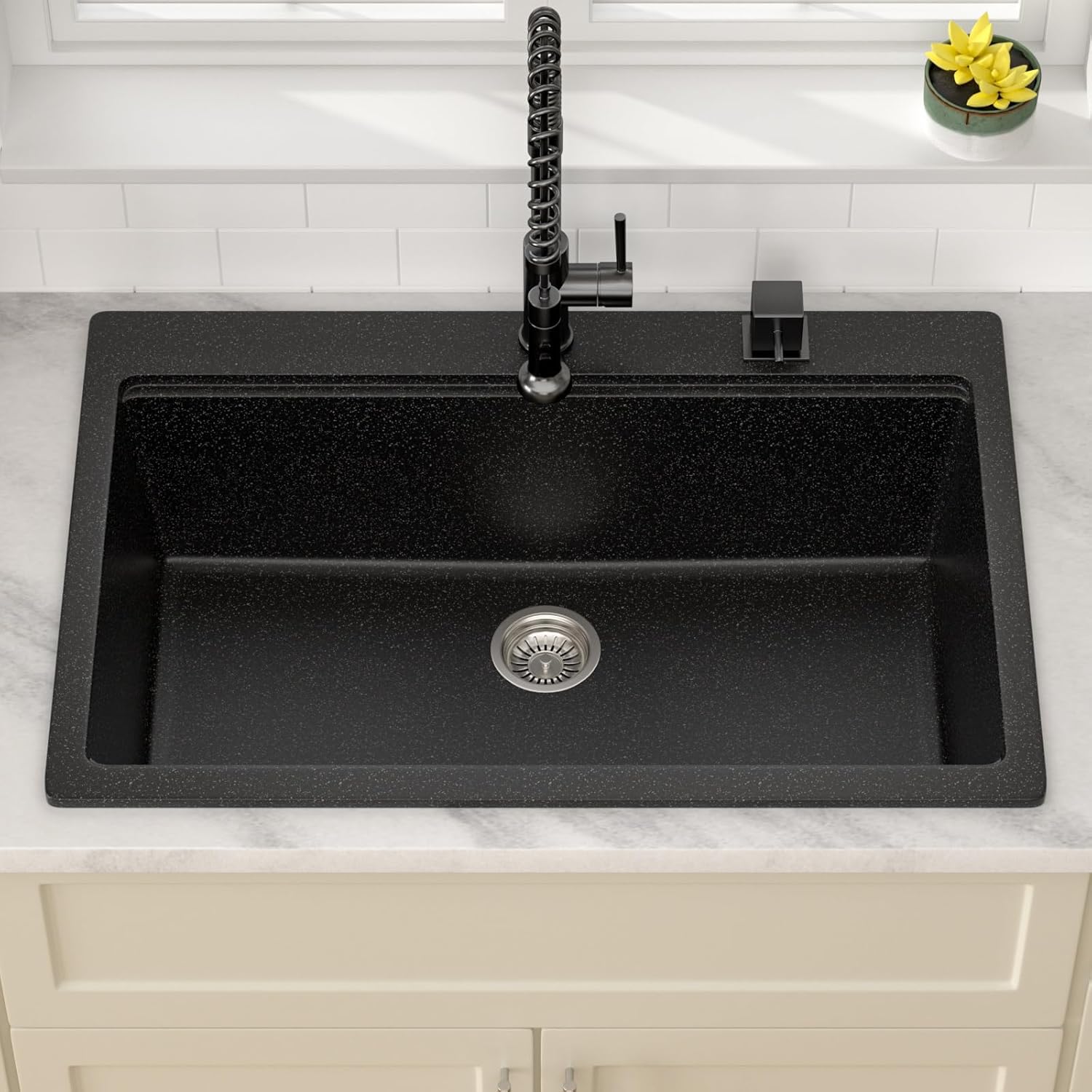 - Easy To Drain: Top mounted design for easy and convenient installation. The uniqueness of the Quartz Composite makes the drainage of the sink excellent, allowing for complete drainage