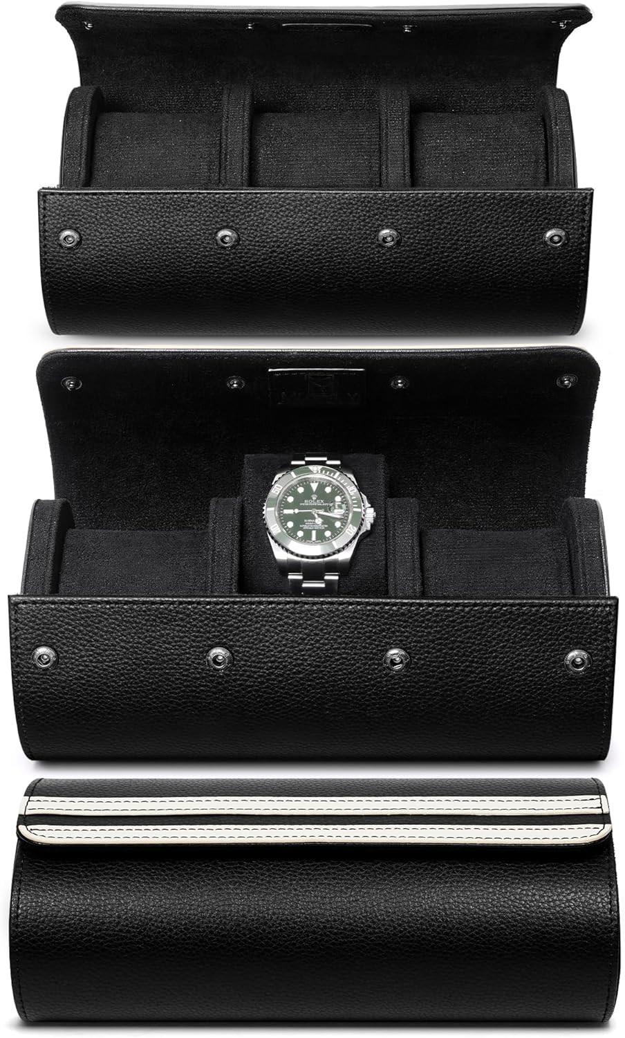 - 3-slot watch roll: The MOZSLY watch roll case is divided into 3 watch slots and has a soft pillow, which can accommodate watches of various sizes. The button switch design lets you turn your watch roll case on or off anytime and anywhere.