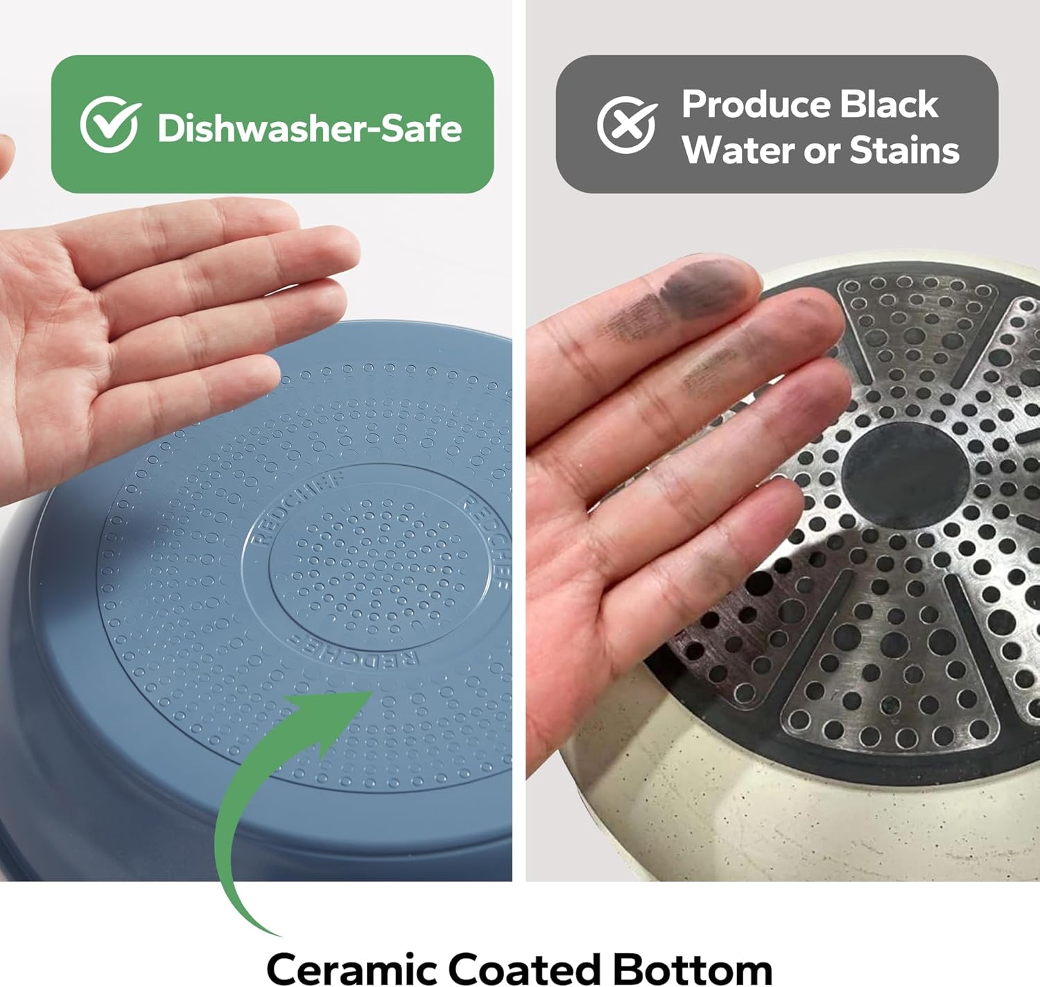 - Natural Dual-Sided Ceramic Coating: Redchef ceramic pots and pans set boasts an innovative dual-sided ceramic coating, inside and out. This advanced ceramic finish ensures effortless cleaning, allowing you to effortlessly wash both the interior and exterior of your pots and pans