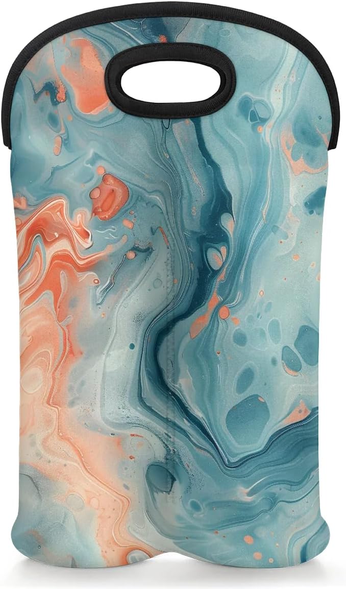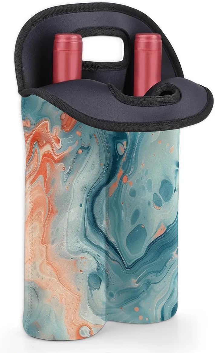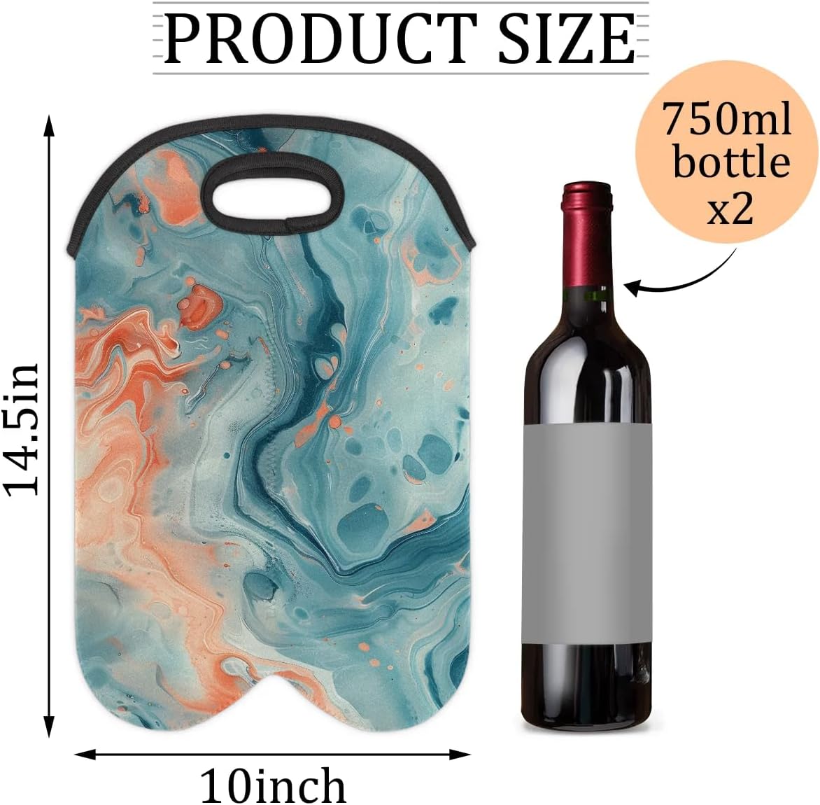 Wine Carrier Tote Personalized Bag for 2 Bottles - Neoprene Wine Bottle Holder with Carry Handle, Wine Protective Bag Insulated Bag Beer Cans Water Bottle Holder for Travel Picnic,Style25