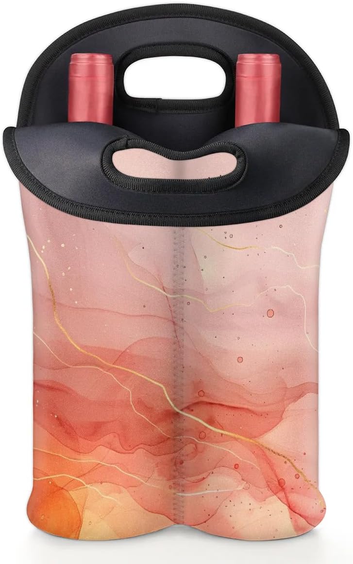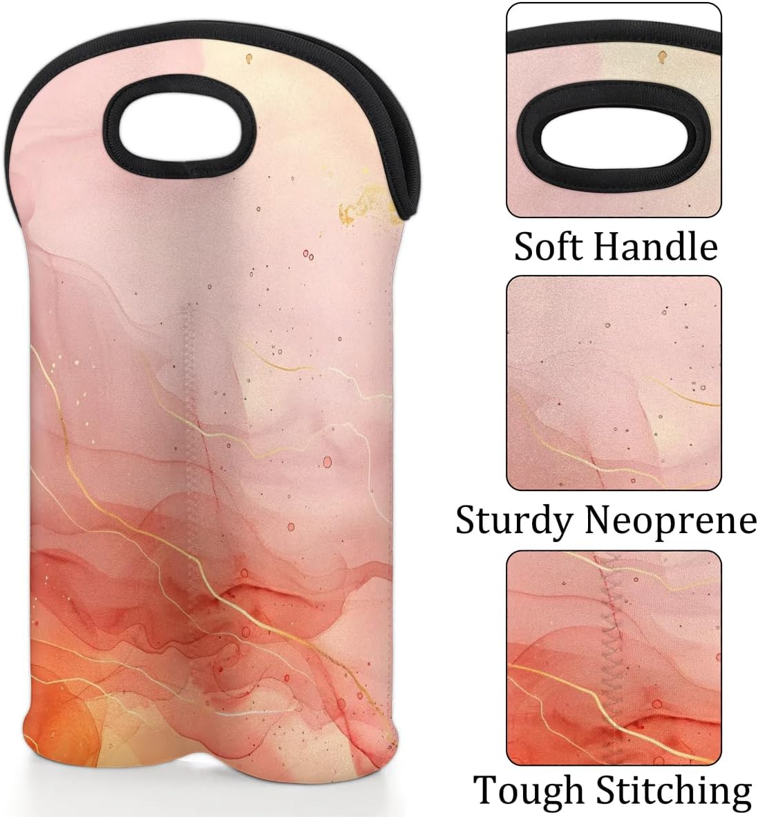 Wine Carrier Tote Personalized Bag for 2 Bottles - Neoprene Wine Bottle Holder with Carry Handle, Wine Protective Bag Insulated Bag Beer Cans Water Bottle Holder for Travel Picnic,Style17