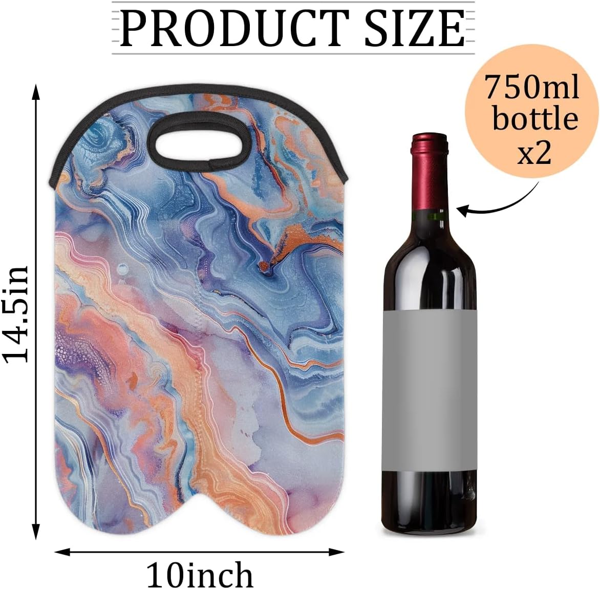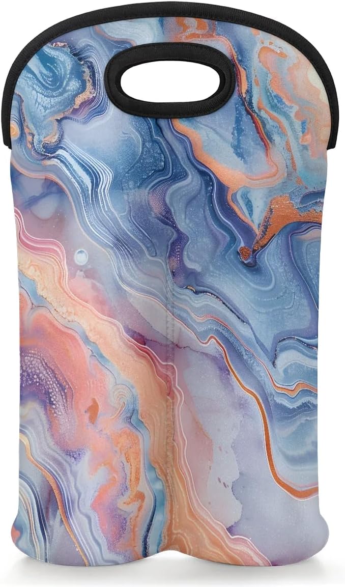 Wine Carrier Tote Personalized Bag for 2 Bottles - Neoprene Wine Bottle Holder with Carry Handle, Wine Protective Bag Insulated Bag Beer Cans Water Bottle Holder for Travel Picnic,Style26