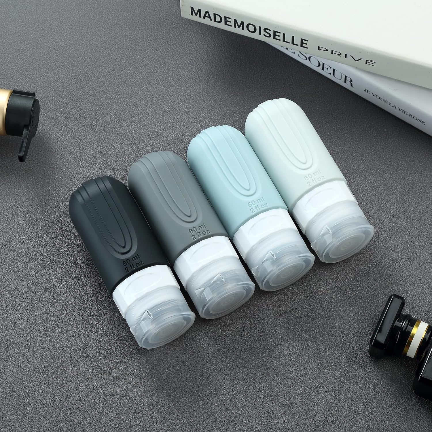 Travel Bottles for Toiletries, Tsa Approved 2oz Travel size Bottles, BPA Free Leak Proof Travels Toiletry Containers, Traveler Accessories with Toiletry Bag for Shampoo Liquid (4 Pack)