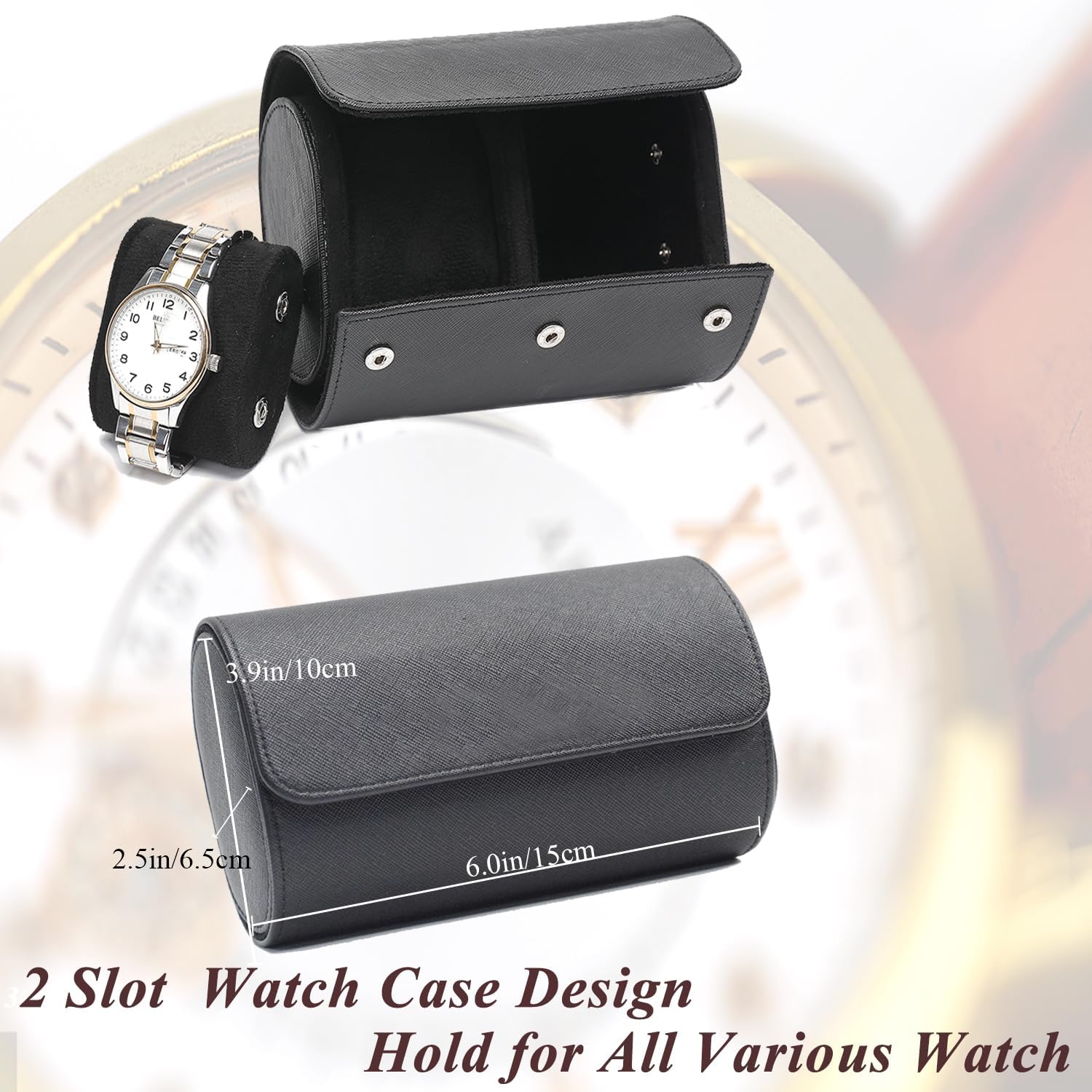 Watch Travel Case, Luxury Leather Watch Roll 2 Slot Organizer Box, Jewelry Storage Case Gifts for Man and Woman Christmas Anniversary Birthday (Black-2slot)