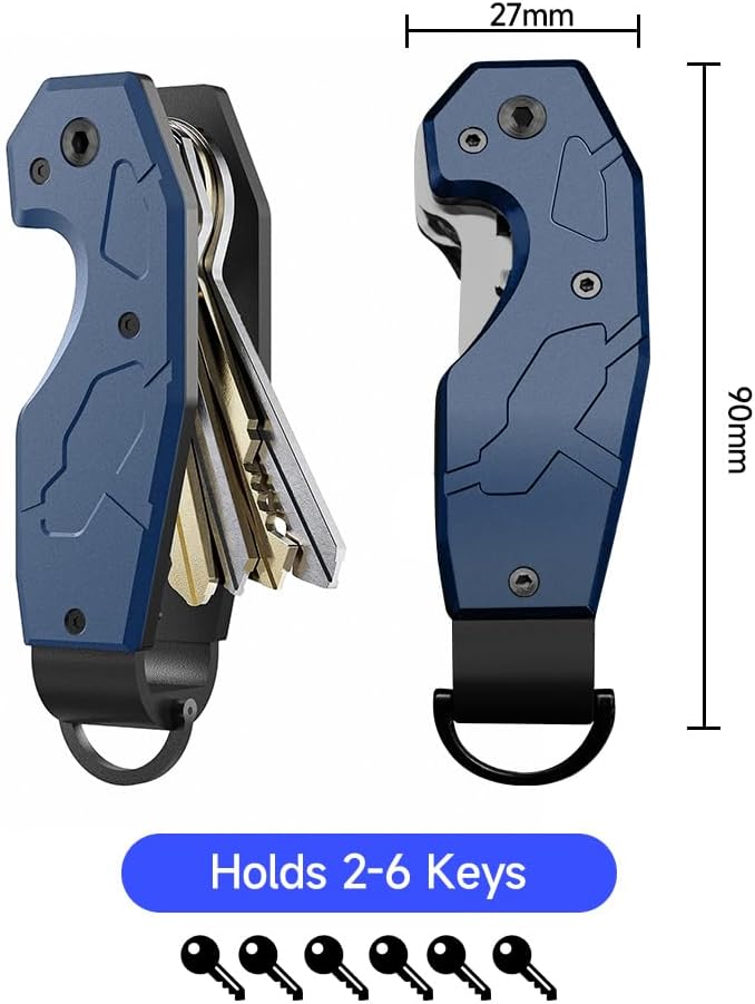 - Efficient Key Management This compact key organizer holds 1-6 keys, keeping them neatly folded and organized. No more jingling or clutter in your pockets or bags!