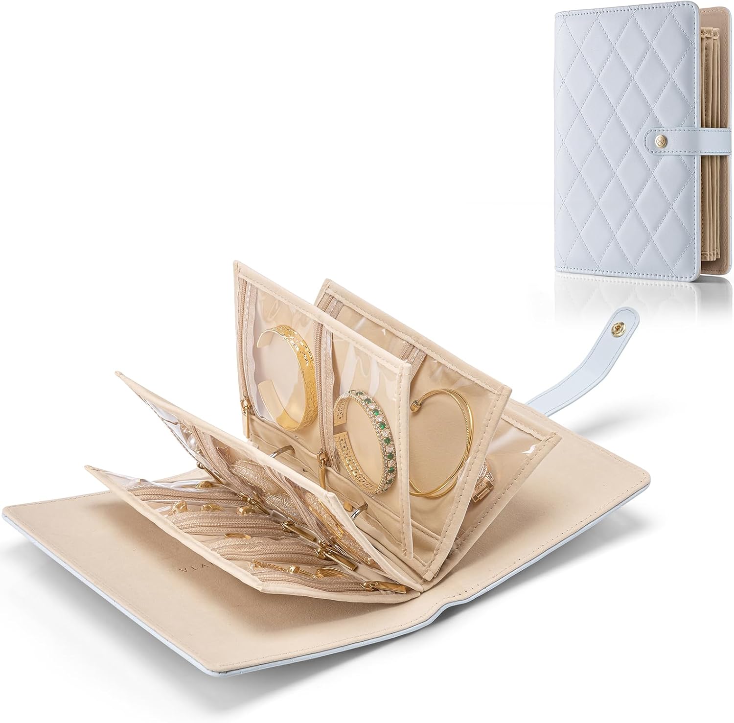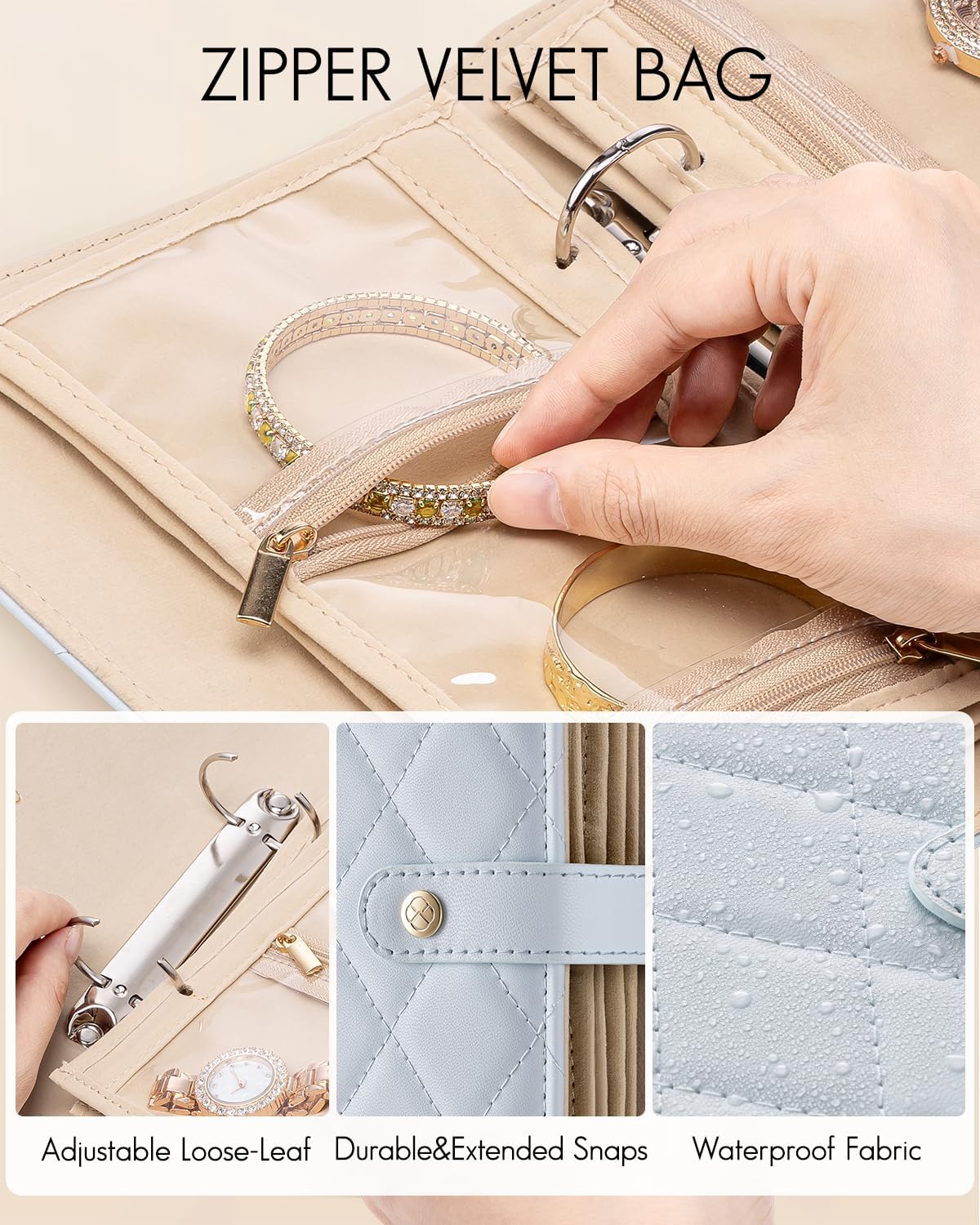 - Waterproof Travel Jewelry Organizer: Foldable jewelry storage book quilted soft material can protect jewelry from getting squished and scratch. Zipper vevlet pockets protect your jewelry from falling out, lost, oxidation, dust and damage