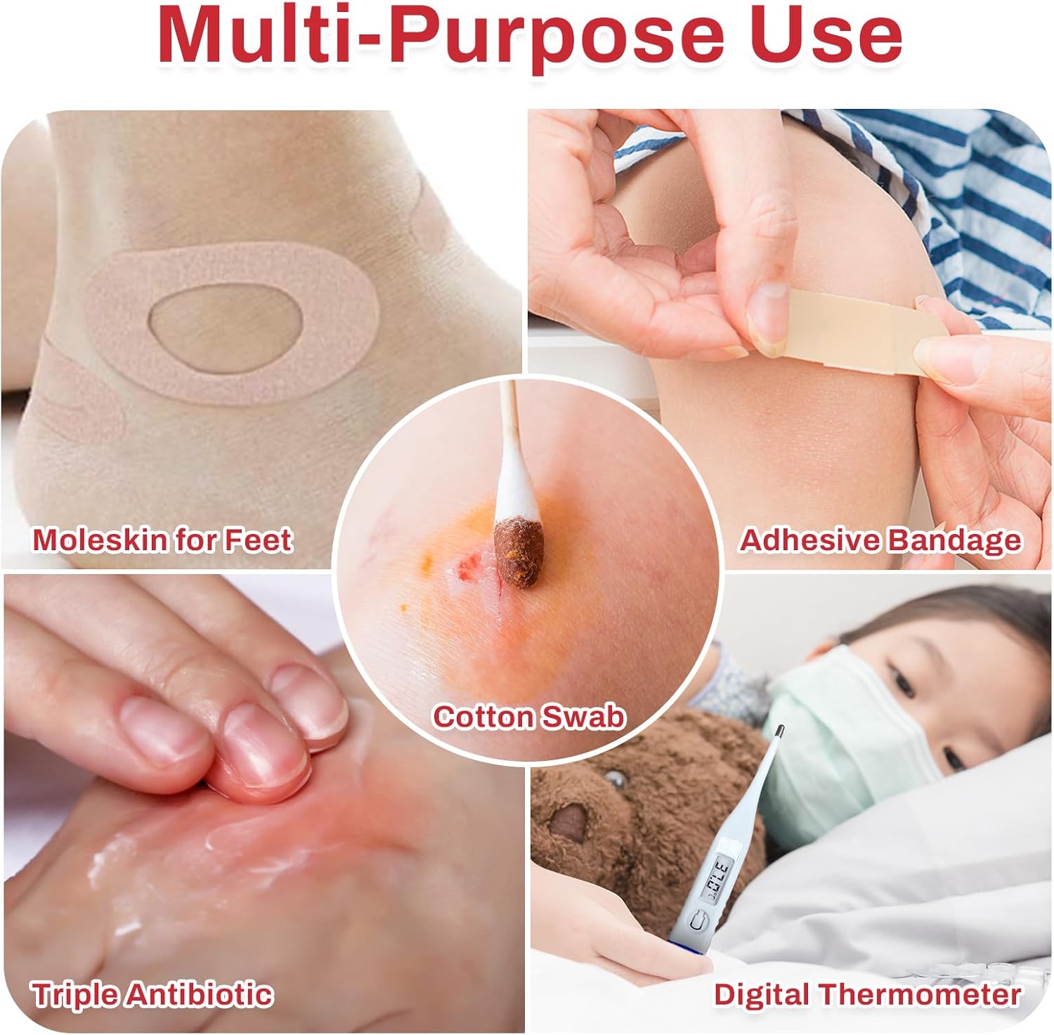 - Complete Configuration: The home first aid kit includes common medical supplies such as a thermometer, antibiotics, ice packs, and burn gel, offering comprehensive equipment to handle minor injuries, illnesses, and emergencies.