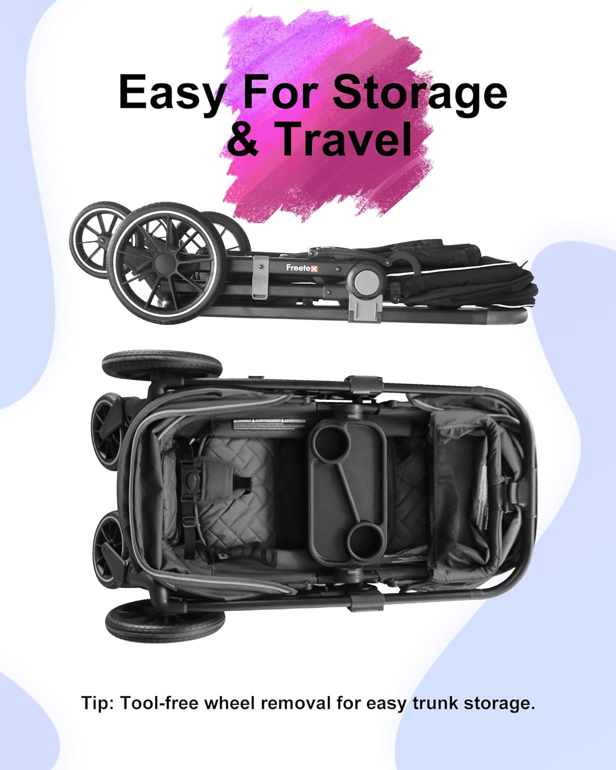 - 2-in-1 Push & Pull Design: Effortlessly transition between stroller and wagon modes to suit for family’s needs. Push like a stroller or pull like a wagon—great for versatile everyday use
