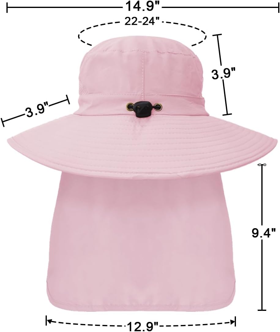 - 【UPF 50+ Sun Protection】Made with high-quality premium UPF 50+ dureble nylon, the wide brim with neckflap blocks 99% UVA/UVB ,which perfectly provide you better protection from sunshine and damaging rays for face and neck.