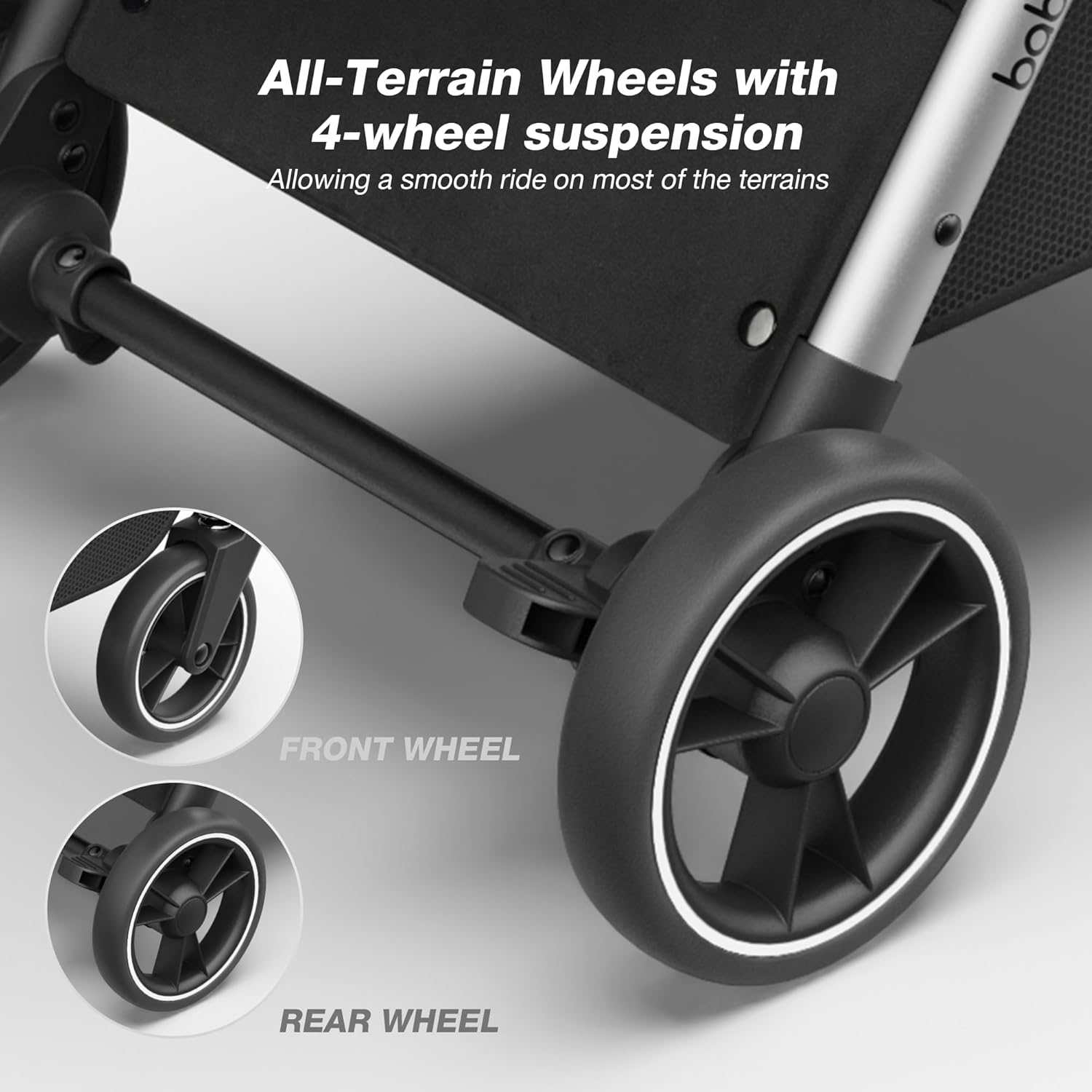 - Strong Frame & Durable Wheels: The frame adopted AeroSpace-Grade material which can provide a range of benefits that make the stroller strong without wobbling, it's durable,and safe for parents and their children to use,It also featured a foot-operated linked-brake for quick stops, adjustable 5-point harness, and EVA shock-absorbing tires with all-4-wheel suspension - Together they are providing with a smooth ride for you and your baby.
