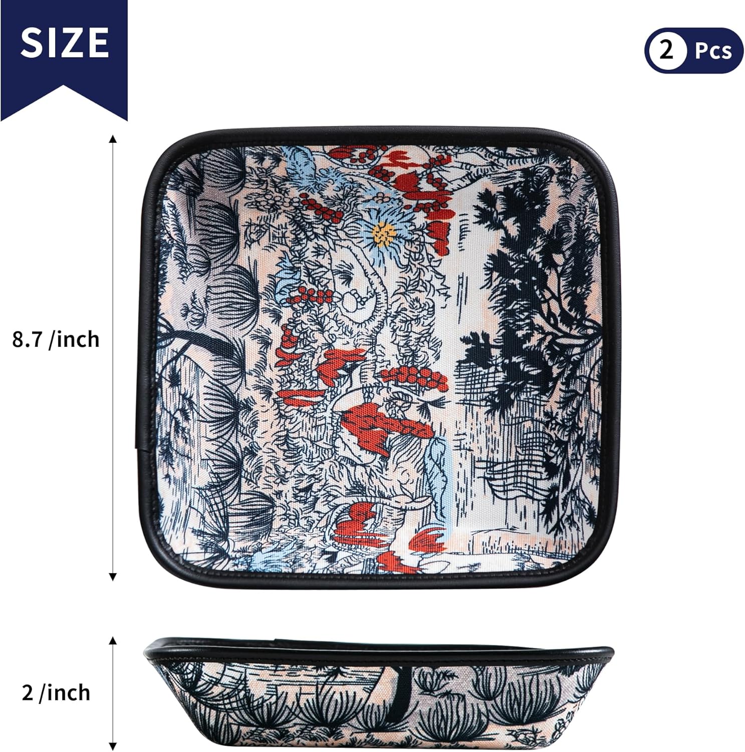 2025 Improved Design Premium Square Fabric Valet Tray Organizer Set of 2, Hard Canvas Catchall Tray for Watches, Keys, Wallets, Jewelry & Candys on Desk, Bedside, Nightstand (Square Hard)