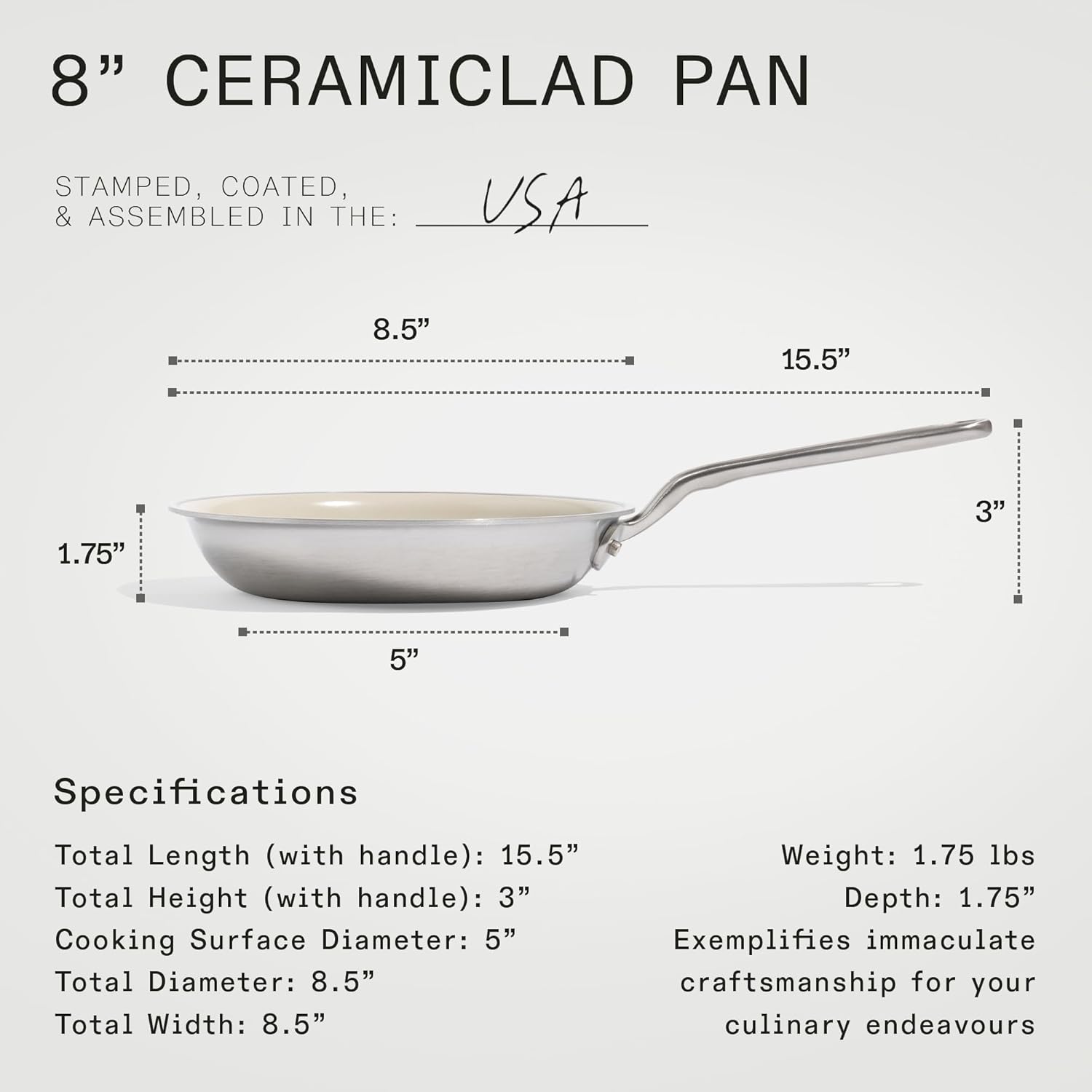 Made In Cookware - 8" Ceramic Non Stick Frying Pan (Stainless Handle) - 5-Ply Stainless Clad with Stay-Cool Handle - Professional Cookware - Induction Compatible