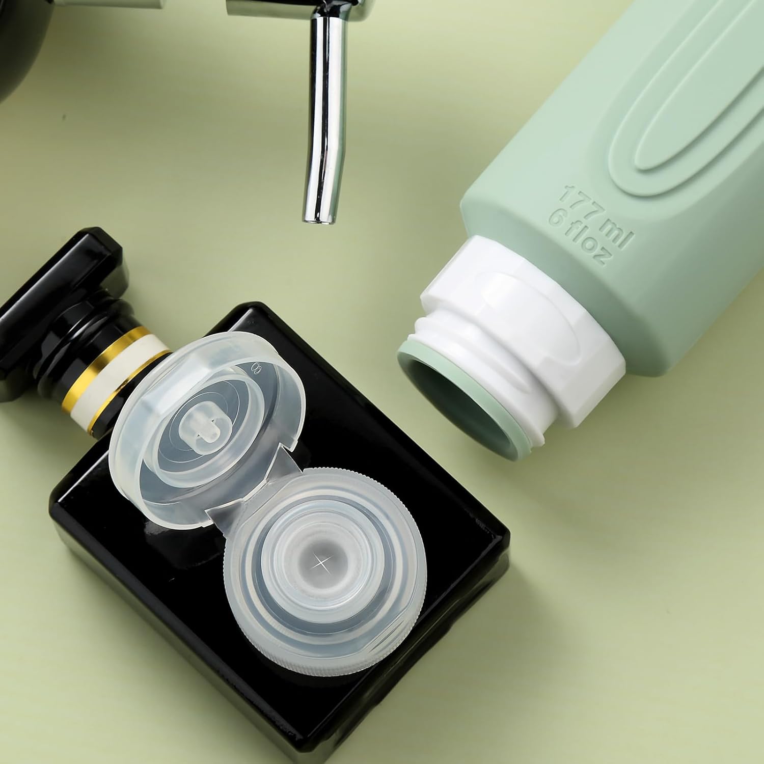 - Oversize 6oz travel bottle: Featuring a PVC toiletry bag, these travel-sized silicone bottles are perfect for storing and dispensing your favorite shampoos, lotions, and other liquids. Designed for convenience and durability, this travel set is a must-have for all your adventures.