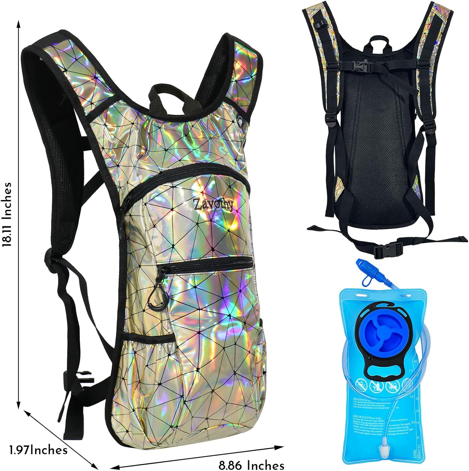 Reflective Hydration Backpack, Hydration Pack - Water Backpack with 2L/3L Hydration Bladder, Essential for Festivals - Rave Hydration Pack for Hiking, Running, Cycling, and Festivals