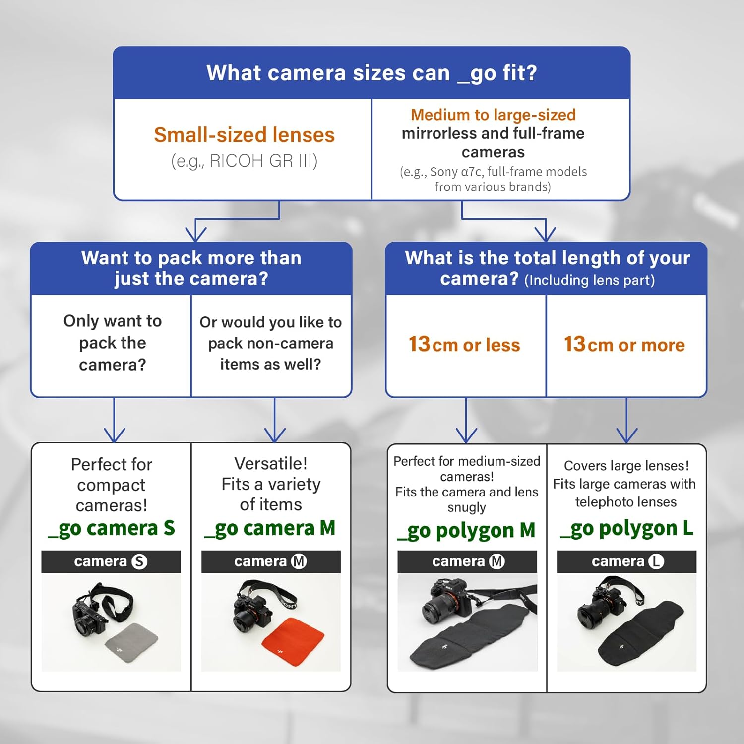 - Recommended size for cameras with a total length, including the lens, of "5.1 inches" or less.