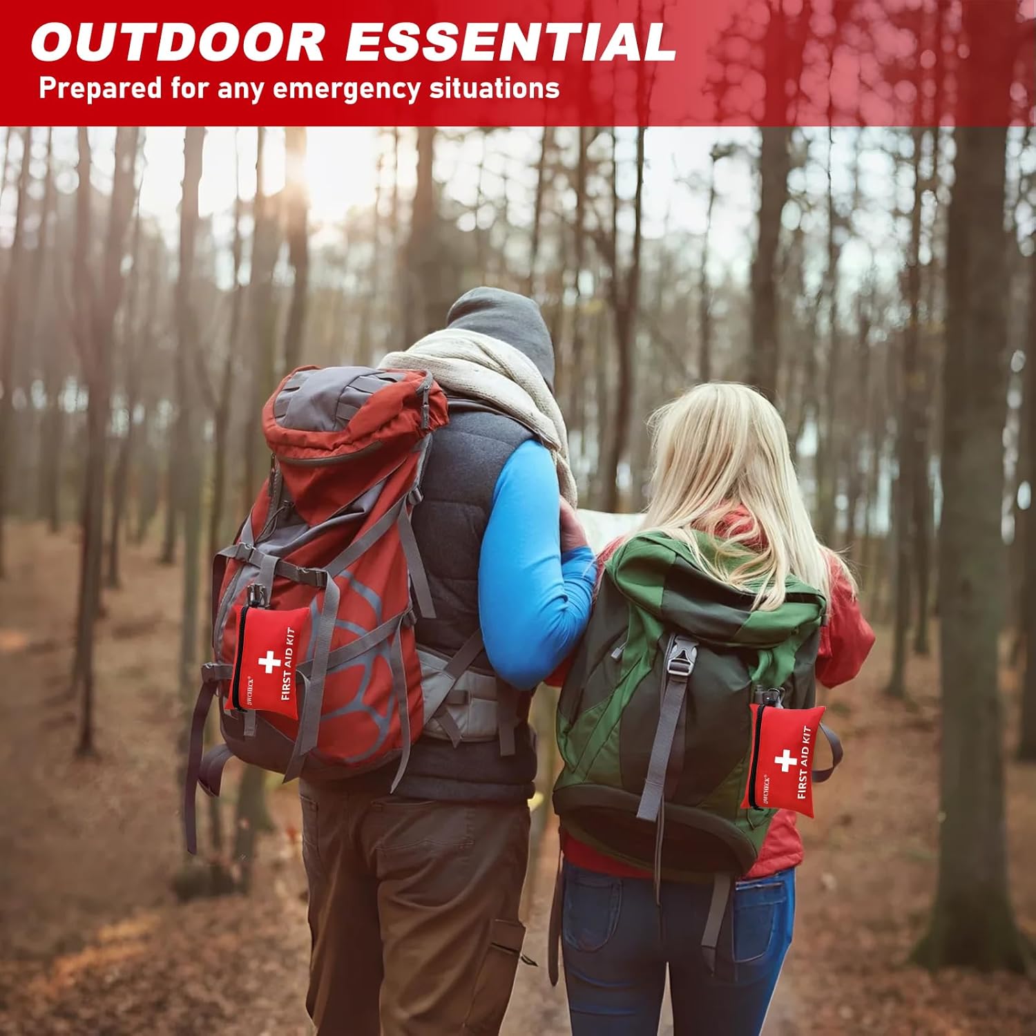- COMPACT & PORTABLE:This mini first aid kit measures 7.87 x 5.51 inches (20 x 14 cm) and weighs 0.52 lbs (240 g). Our compact medical kit comes with a sturdy carabiner makes it easy to carry and hung on your backpack. A must-have travel gear item for camping, outdoor emergencies, hiking, or survival situations.