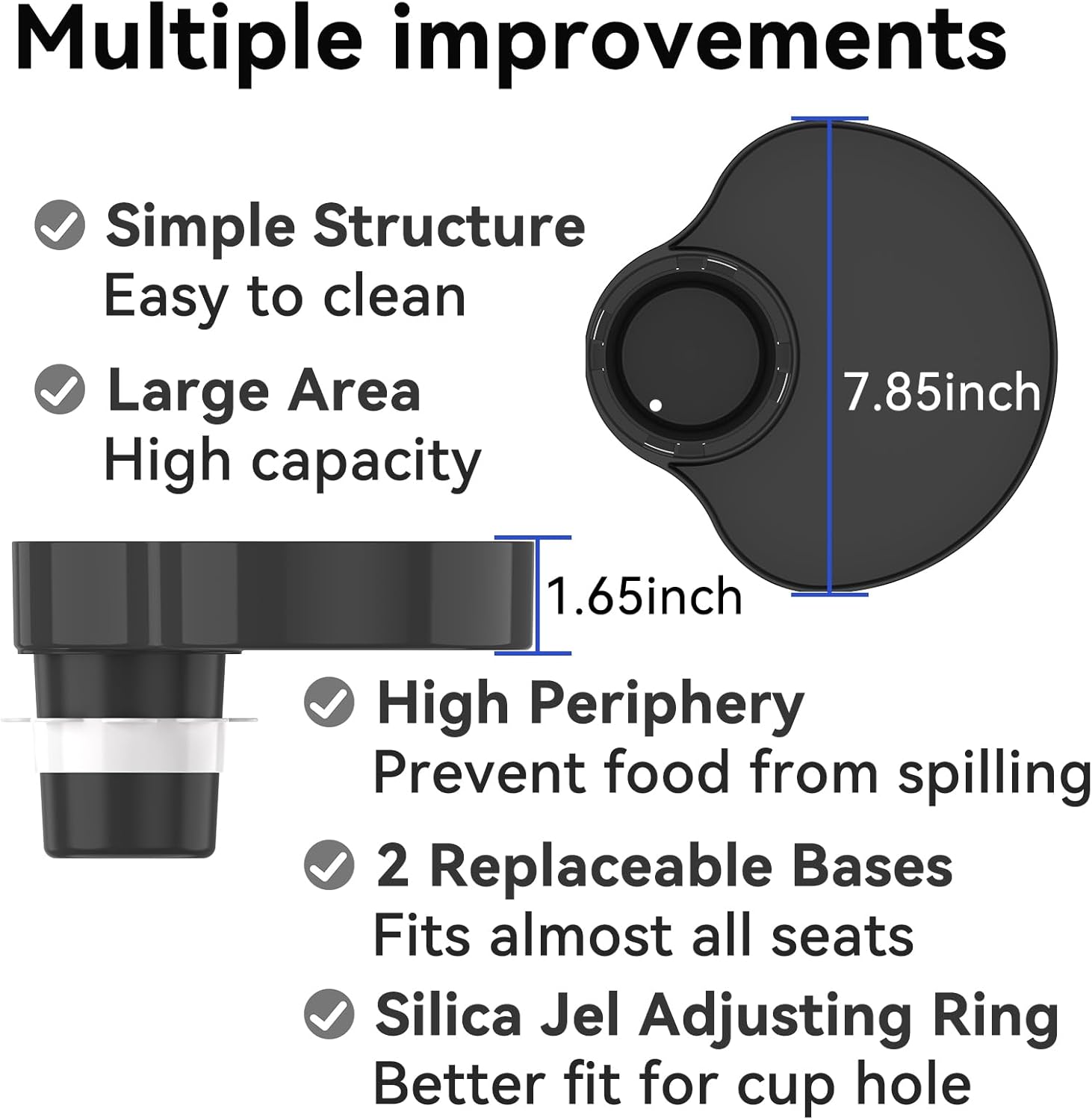 - [Big volume] The car seat food tray diameter up to 7.85 inches,big volume can store more food and snack.(Black)