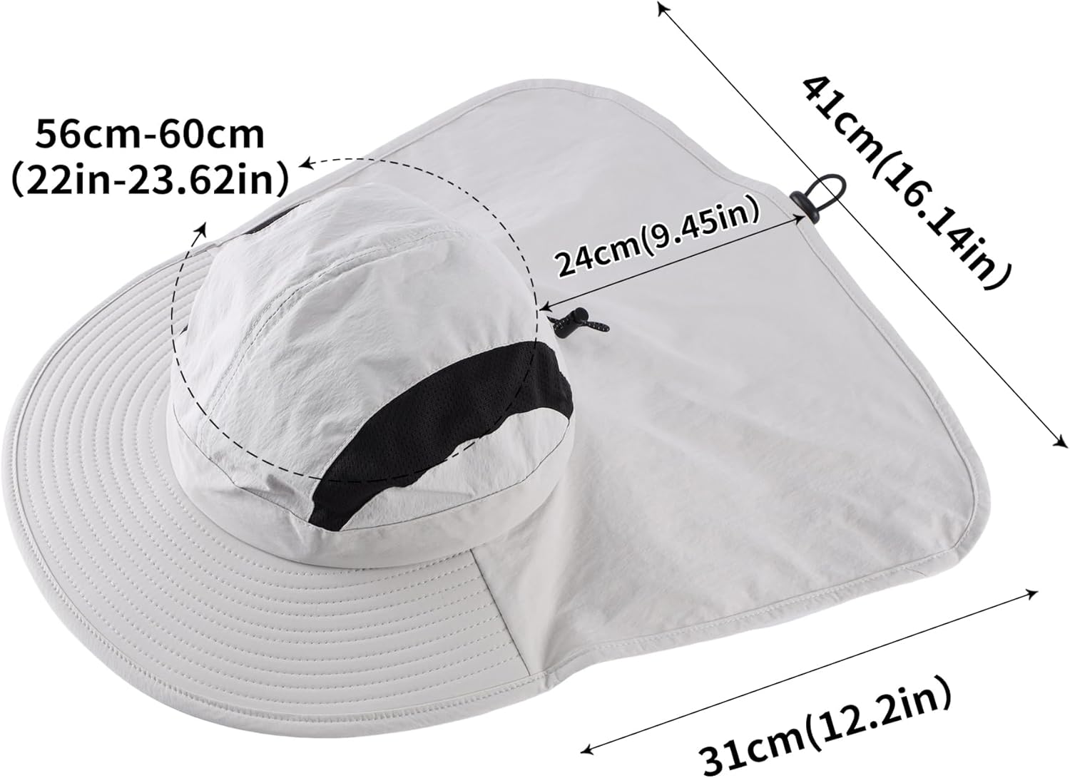 - Fishing Hat with Neck Flap: The 9.5cm(3.74") long wide neck flap adds an extra layer of protection, preventing the back of your neck from getting sunburned. Flap width 41cm x 31cm (16.1"x12.2")