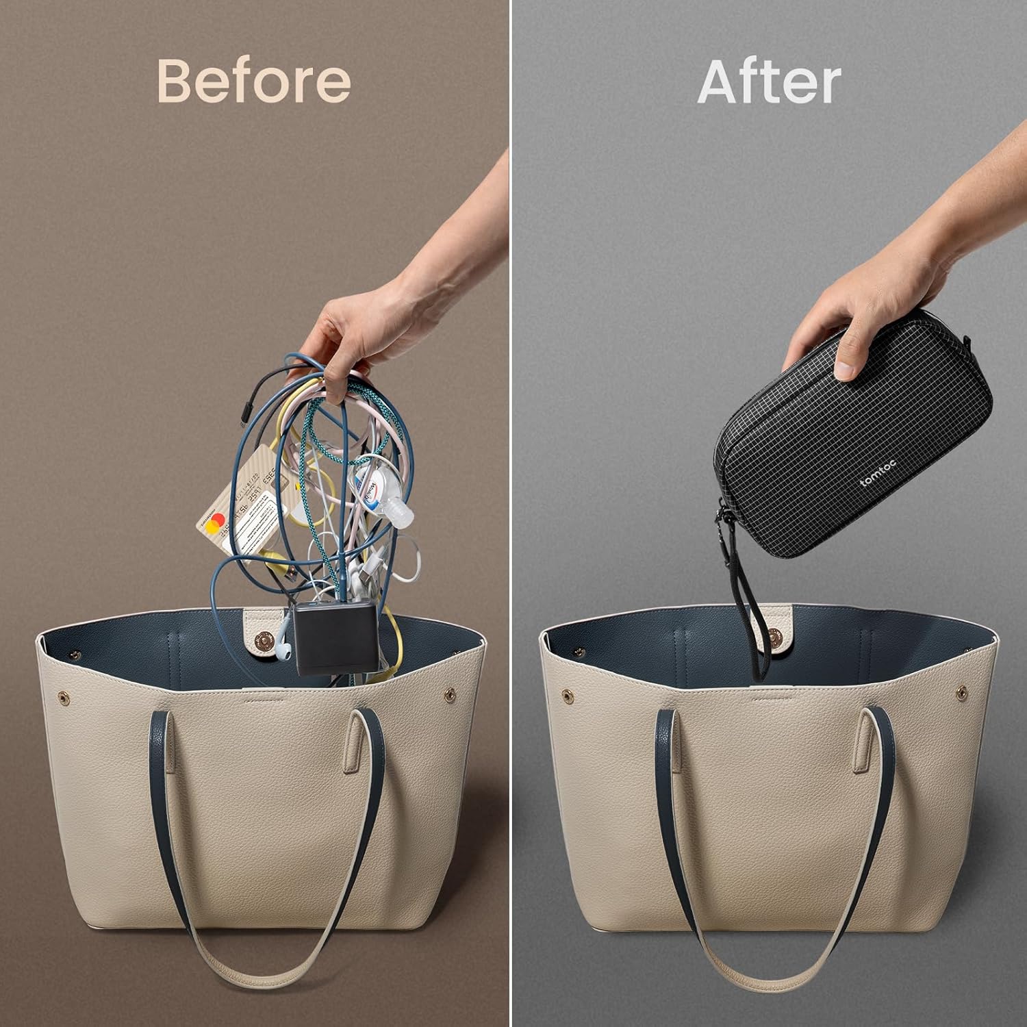 - Portable & Convenient: Designed with portability in mind, the pouch fits seamlessly into your backpack, tote, or handbag, keeping your essentials organized and accessible for daily use, while maintaining a sleek, refined profile