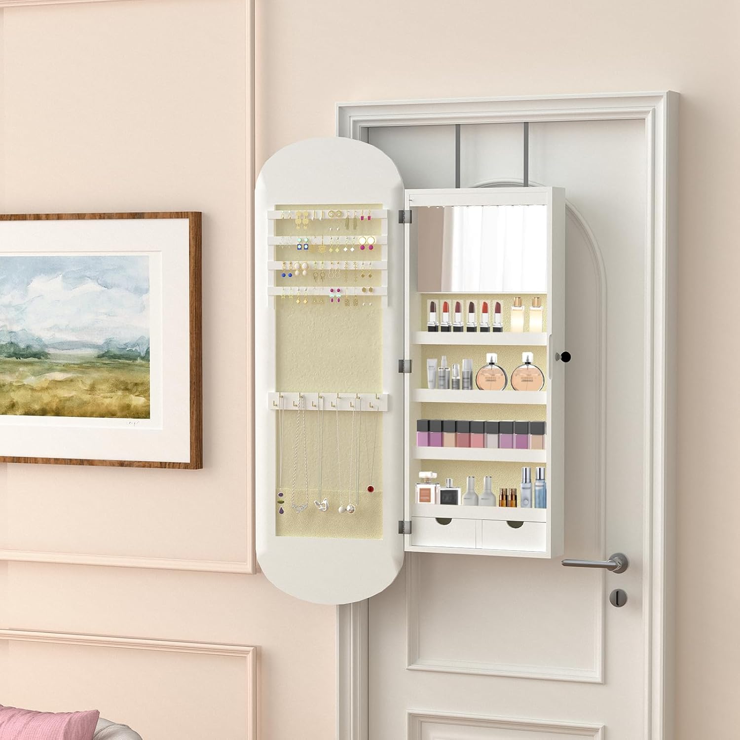 - Wide Surface for Optimal Viewing:With dimensions of 3.9"D x 14.5"W x 43.7"H, this hanging jewelry organizer provides a broad view that’s 2 inches wider than standard mirrors. Prepare confidently as you effortlessly check every detail during your morning routine.