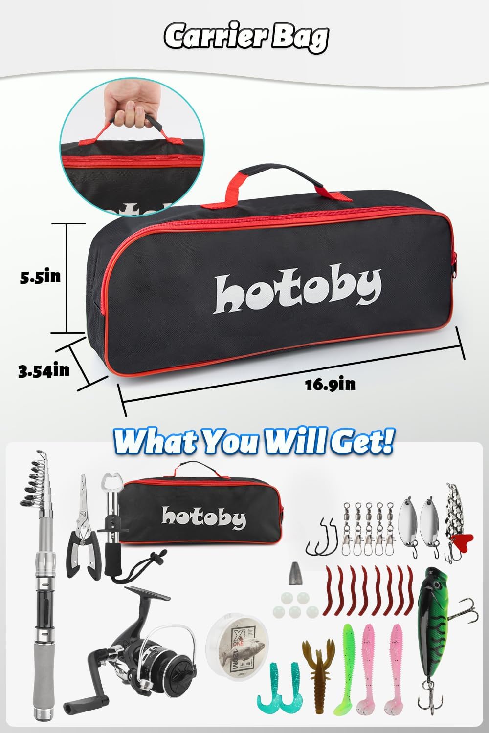 Fishing Pole Combo Set, 6.89ft Fishing Rod and Reel Combo, Carbon Fiber Telescopic Fishing Rod Kit with Spinning Reel, Fishing Pliers, Lip Gripper, Line, Lures for Beginner Angler