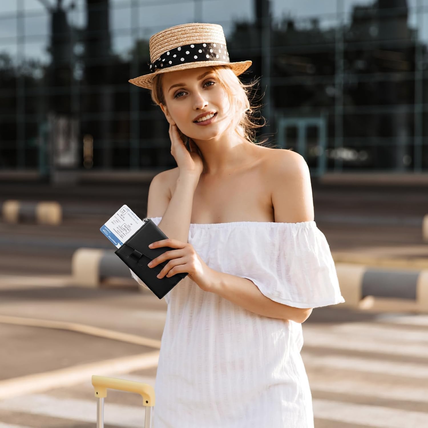 - [Secure & Practical] The RFID protection combined with a sturdy Real Leather construction ensures your information stays secure. The document organizer compartments keep your travel essentials neatly arranged, allowing quick access when needed