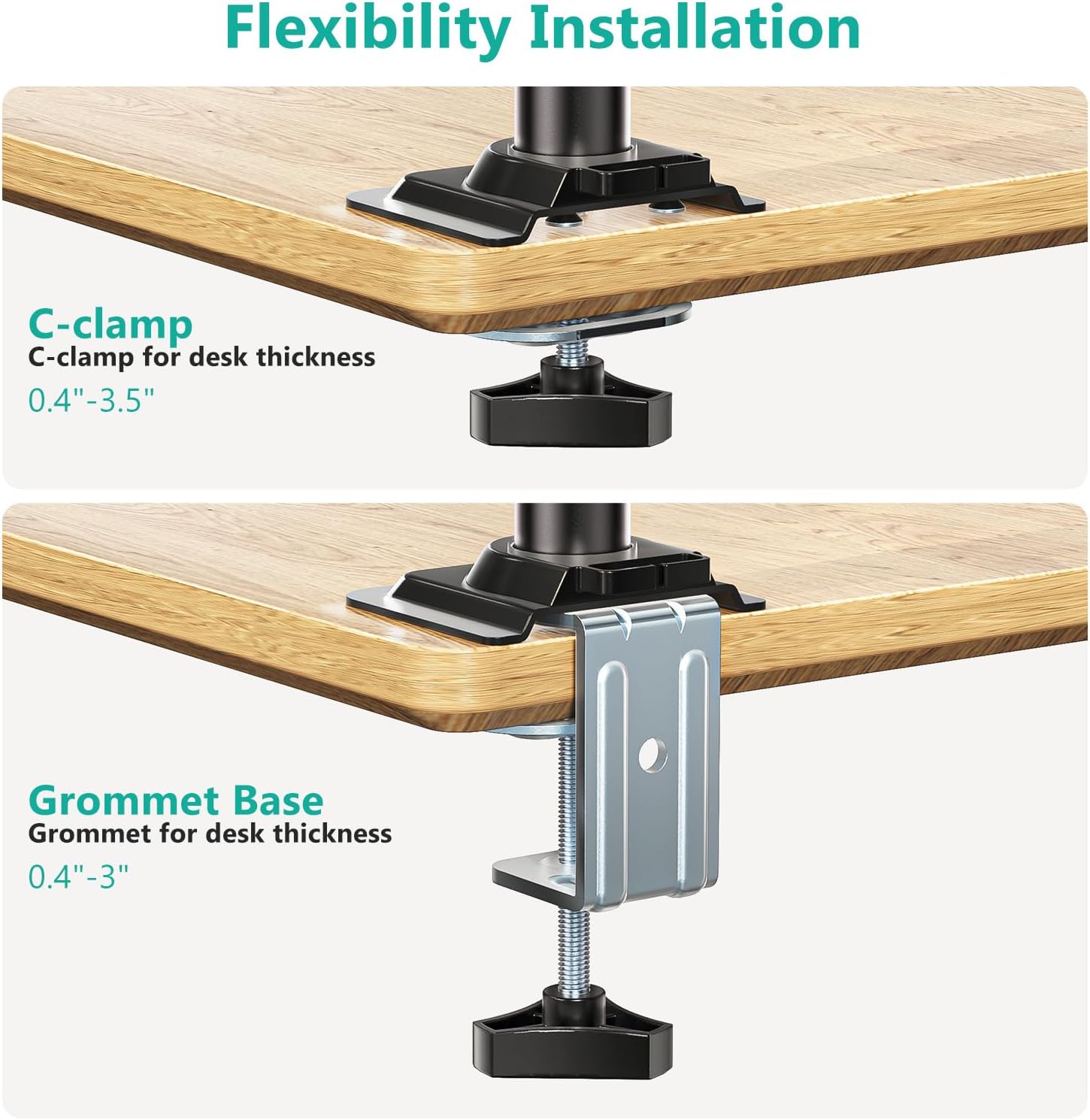 - Multiple Options: Designed with a C-clamp for desks ranging from 0.39” to 2.76” thick and a Grommet mount for 0.39” to 1.97” thick desks. WALI laptop mount ensures a secure fit on a variety of desk types