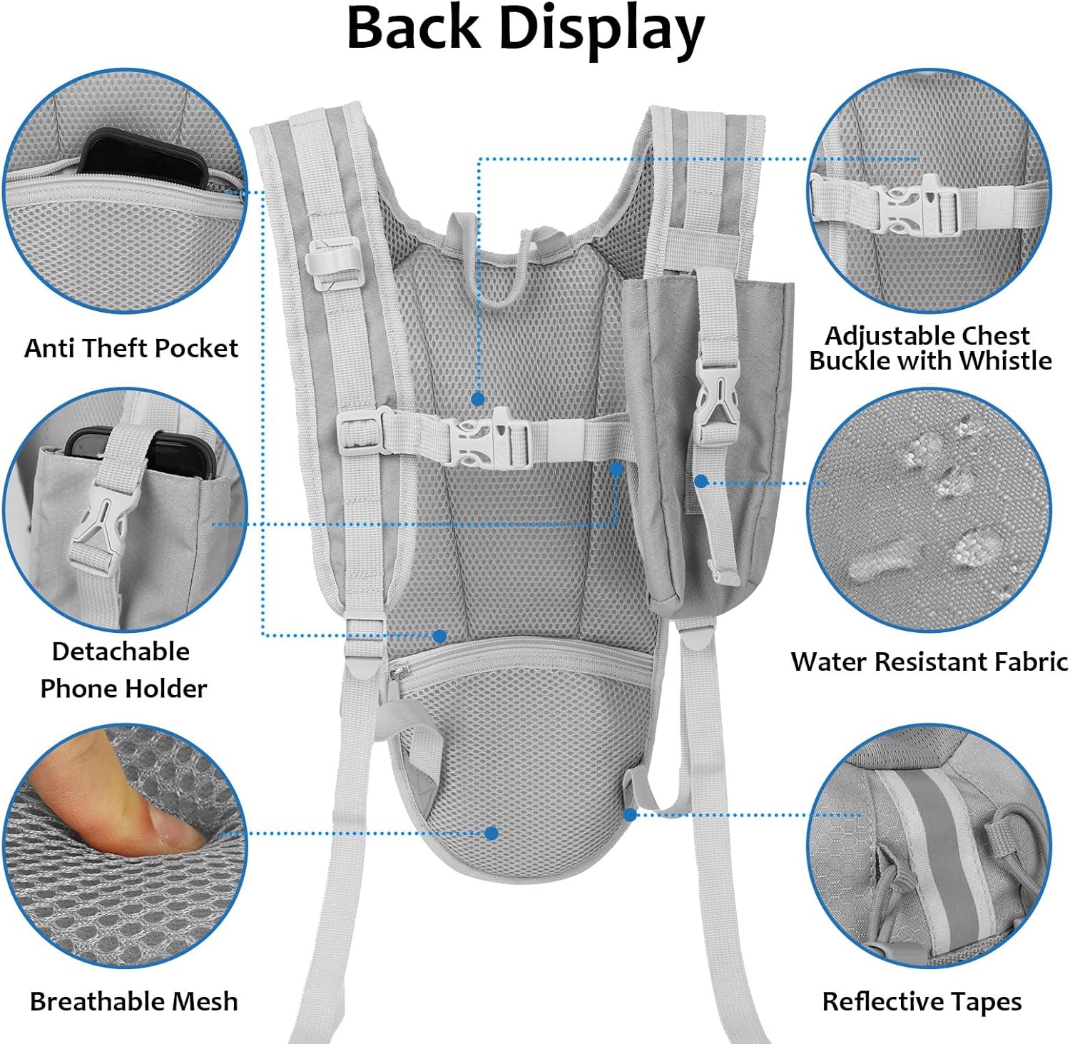 Lightweight Hydration Backpack 2L Water Bladder Pack for Running, Cycling, Hiking – Anti-Theft Water Backpack with Phone Holder, Trekking Pole Holder & Reflective Strips for Men & Women