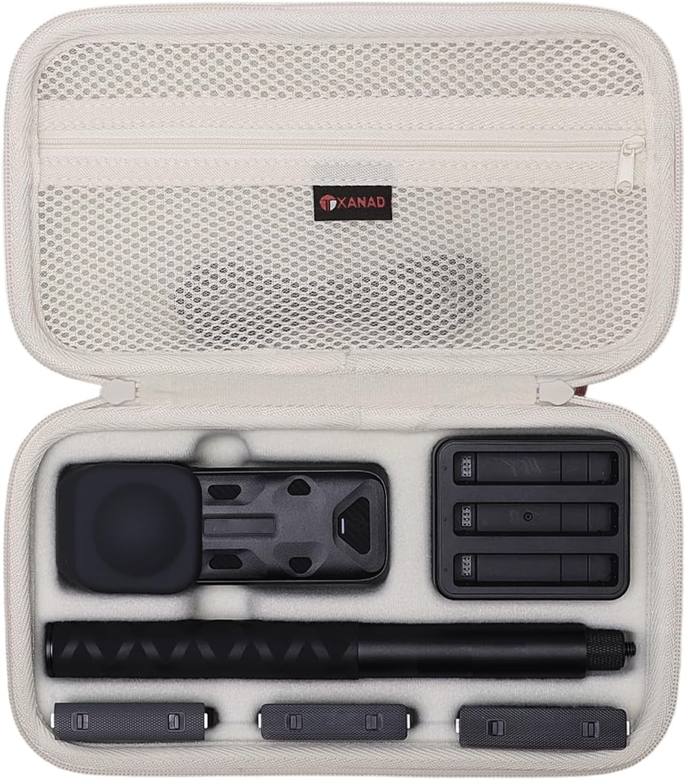 - Perfect Compatibility: The hard case specifically crafted for your insta360 x5/x4/x3/x2 camera &114CM Selfie Stick perfectly.The storage slot is specially designed for insta360 cameras,brackets,batteries and other camera accessories.With its custom design makes the camera protected from movement during storage and transportation.Outside Dimensions:10"x5.3"x3.0"