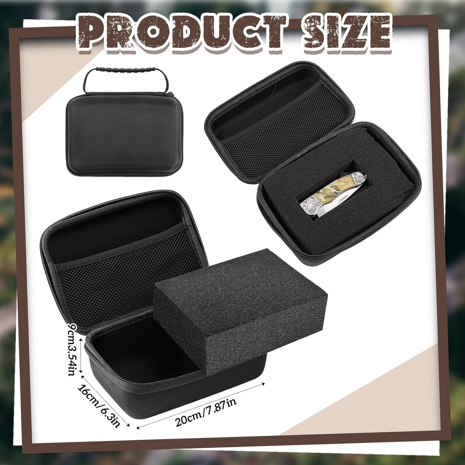 EVA Hard Case with Customizable Foam Protective EVA Carrying Case Shockproof Outdoor for Camera, Digital Products, Electronic Instruments with Knife(Black,7.8 x 6.3 x 3.5 Inch)
