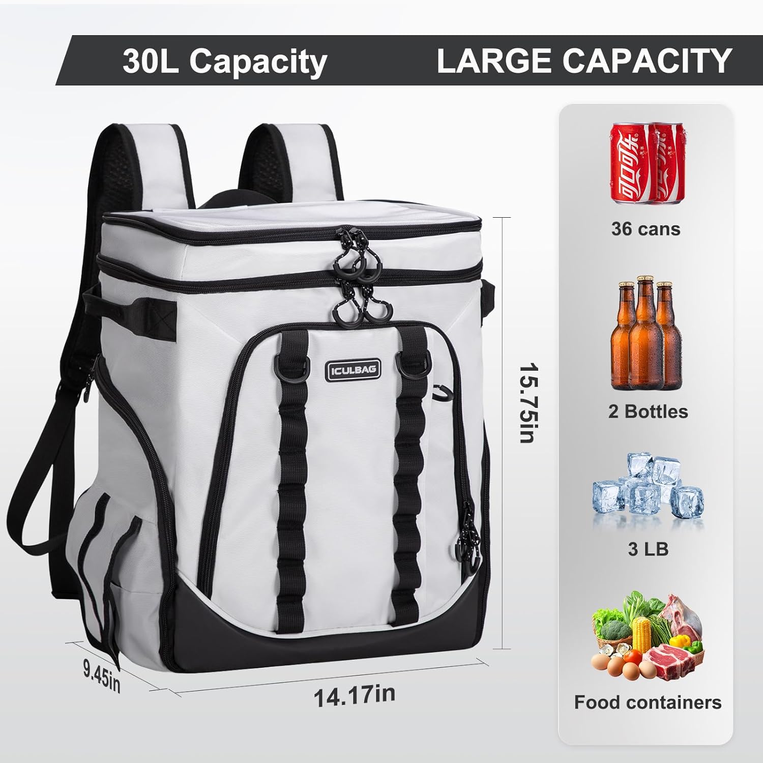 Beach Cooler Backpack for Men 36cans Insulated Backpack Cooler Lunch Bag for Women Camping Hiking Picnic Travel for 18 Hours Cooling 30L