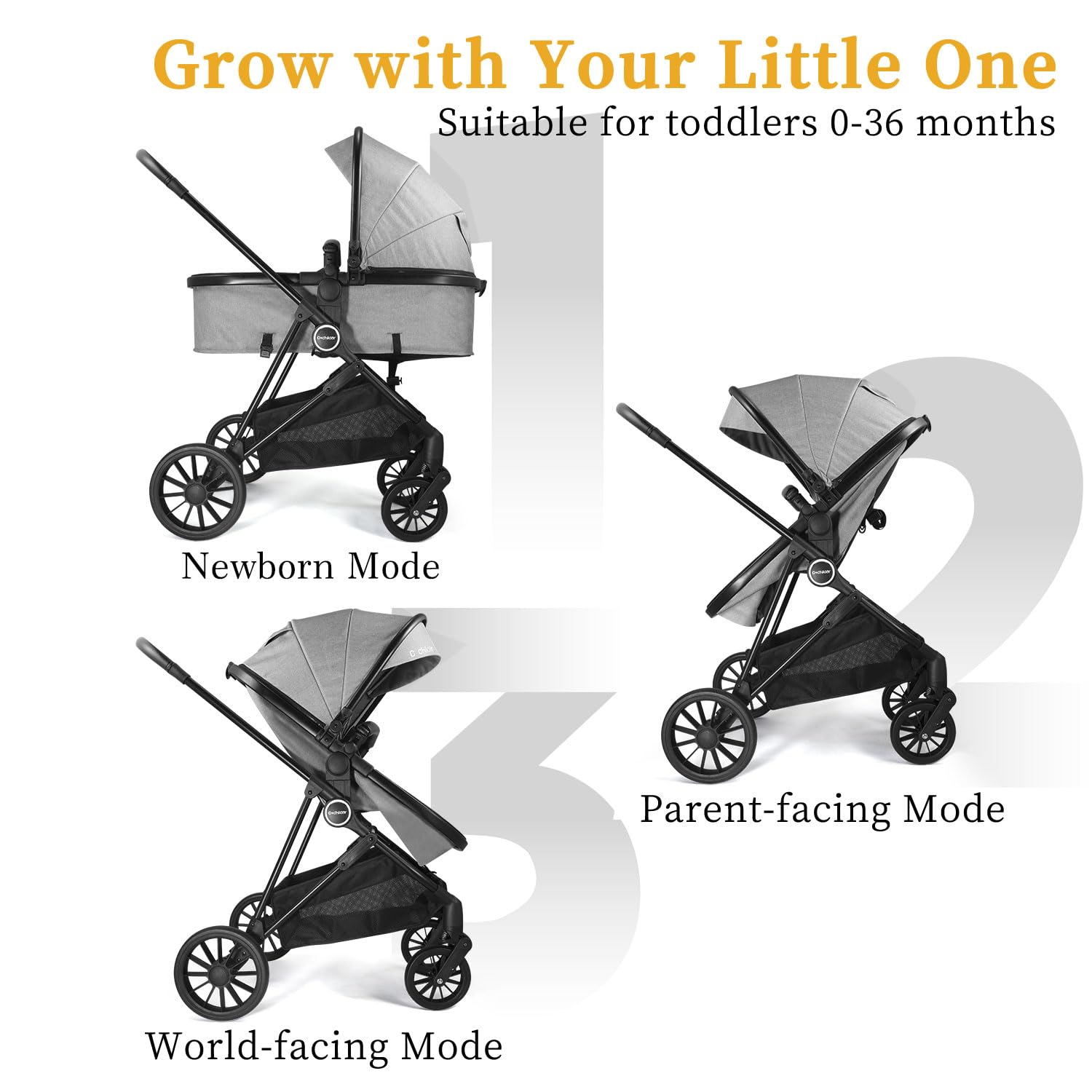- 3 Modes for 0-36 Months: Effortlessly transition between Near-Flat Recline Mode (for newborns), Parent-Facing Mode (for bonding), and World-Facing Mode (for curious toddlers)—supporting every milestone from infancy to toddlerhood