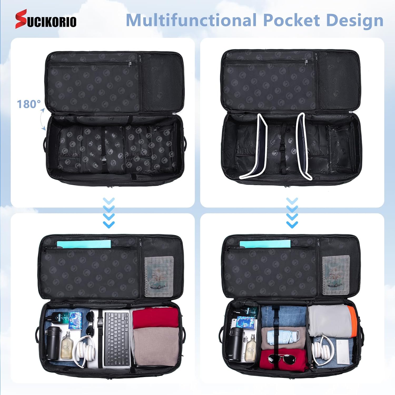 - 【The Ultimate Travel Companion】The SUCIKORIO rolling duffel bag backpack delivers exceptional performance,skillfully combining stylish design with practical functionality. It can serve not only as a carry-on bag but also as a travel backpack and a suitcase.Thanks to its large capacity and waterproof properties,it can also be used as a overnight bag, deployment bag and more. It makes an ideal gift for family and friends on occasions like Christmas, Halloween, Valentine's Day, and other holidays.