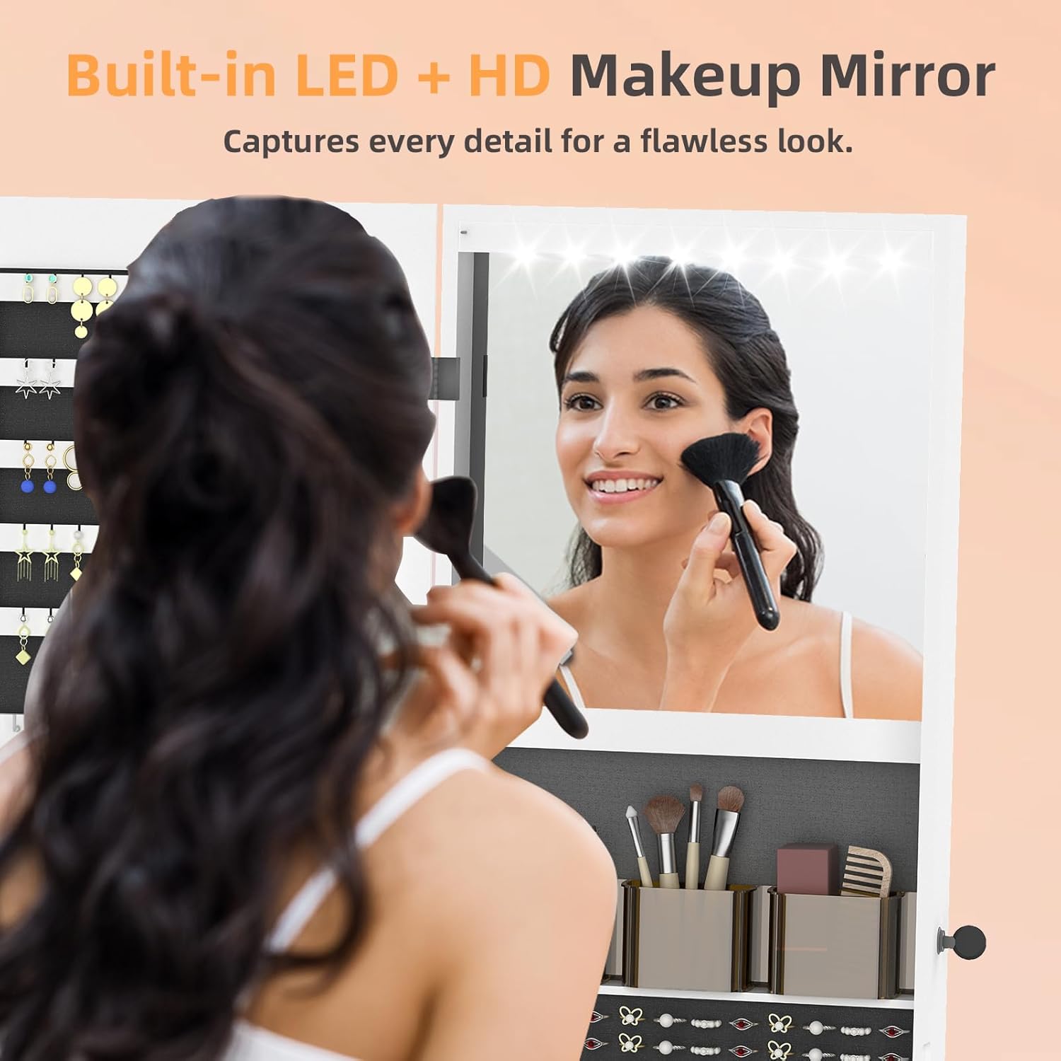- 8 Built-in LED Lights:Illuminate your selection process with the eight built-in LED lights in this jewelry mirror. As soon as you open the cabinet door, the lights activate, providing optimal visibility to help you effortlessly choose your look.