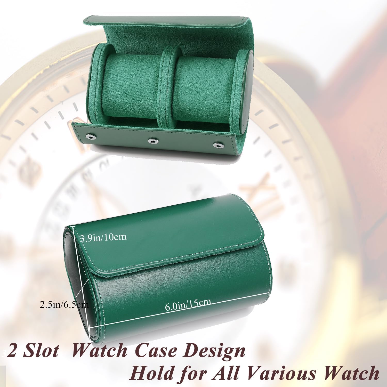 Watch Travel Case, Luxury Leather Watch Roll 2 Slot Organizer Box, Jewelry Storage Case Gifts for Man and Woman Christmas Anniversary Birthday (Green-2slot)