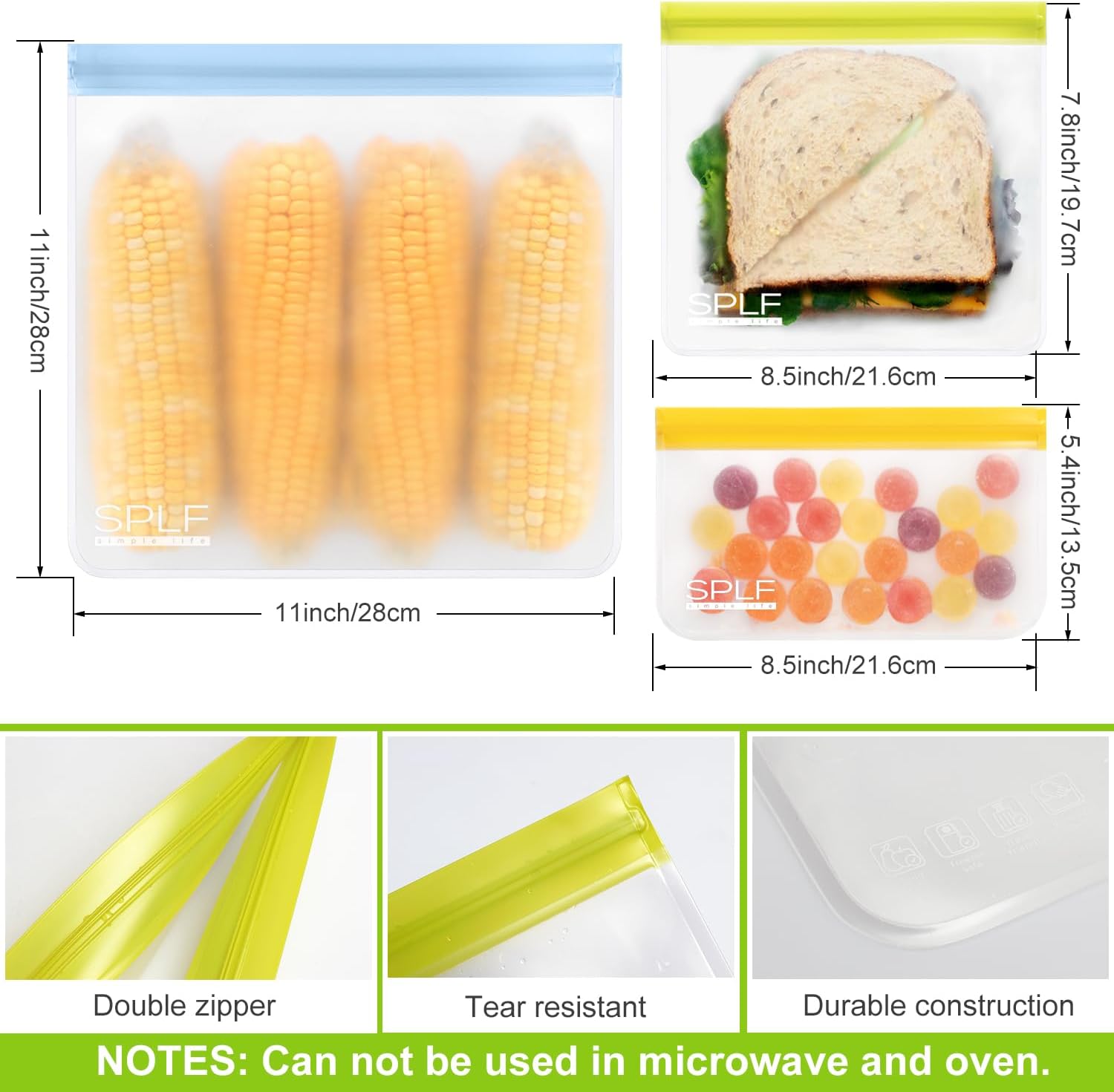 - Food Grade Material: Choose SPLF brand for Truly food-grade reusable storage bags for food. Made of extra thick food-grade Peva material that is PVC, BPA, Chloride and Lead free. Healthy and safe for family and earth.