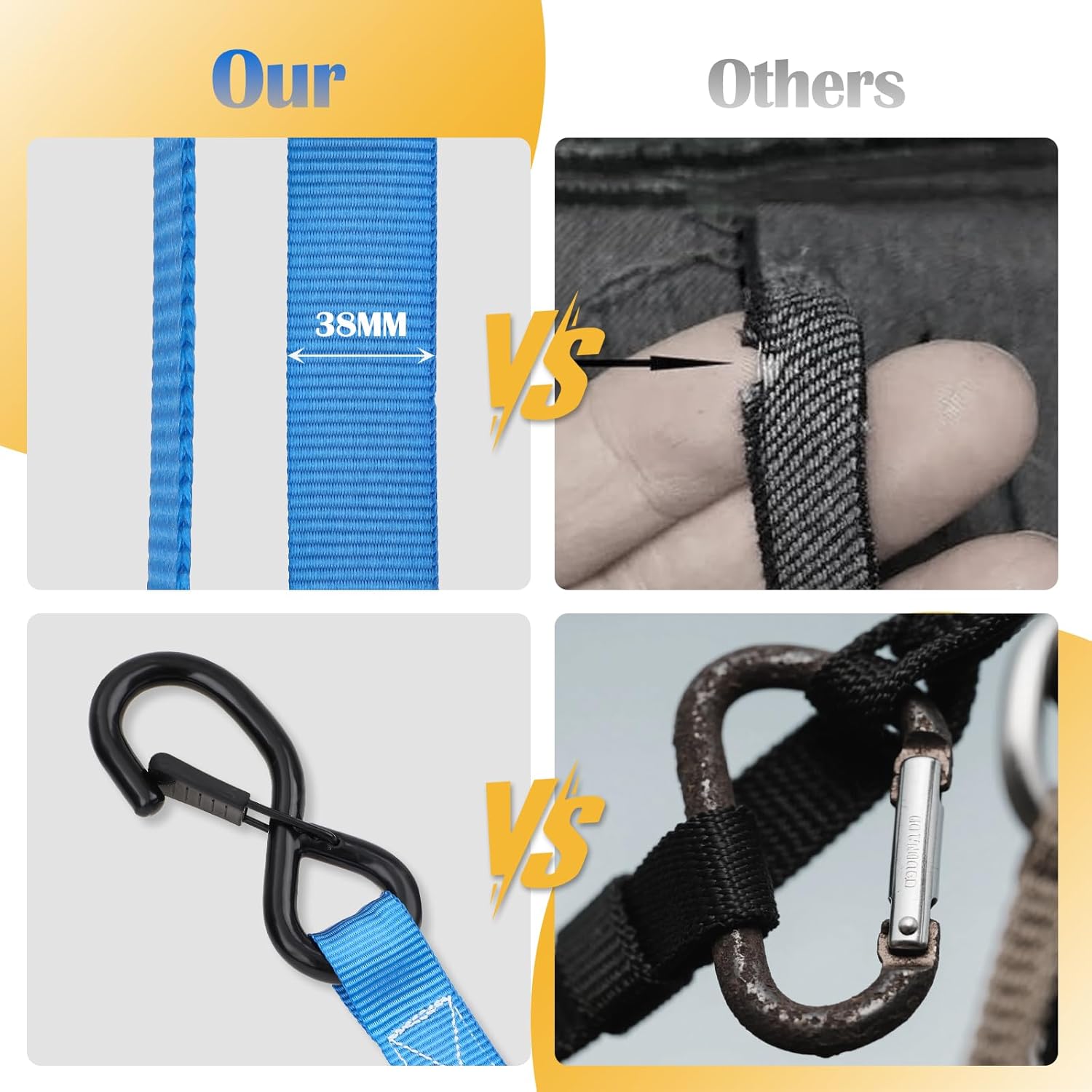 - 【Heavy-Duty Ratchet Straps】Built to withstand extreme conditions, our 1.5-inch wide, 8.2-feet long ratchet straps feature 5,208 lbs breaking strength. Ideal for trucks, vans, trailers, motorcycles, ATVs, boats, and moving furniture, ensuring cargo stays in place and preventing shifting or damage.