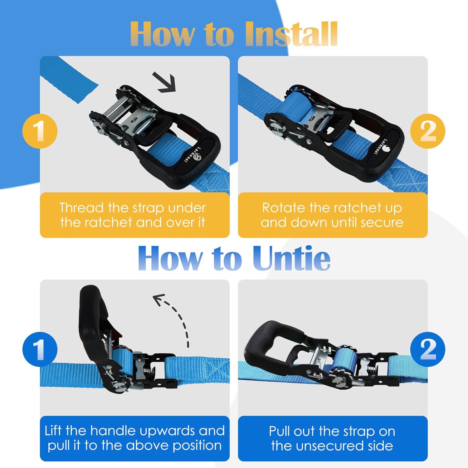 - 【Secure Fastening】The heavy duty ratchet straps set provides consistent tension, keeping your load firmly in place during transport. Designed for quick operation, it allows for easy tightening and release with just one hand, making it effortless even for beginners while saving time and effort.