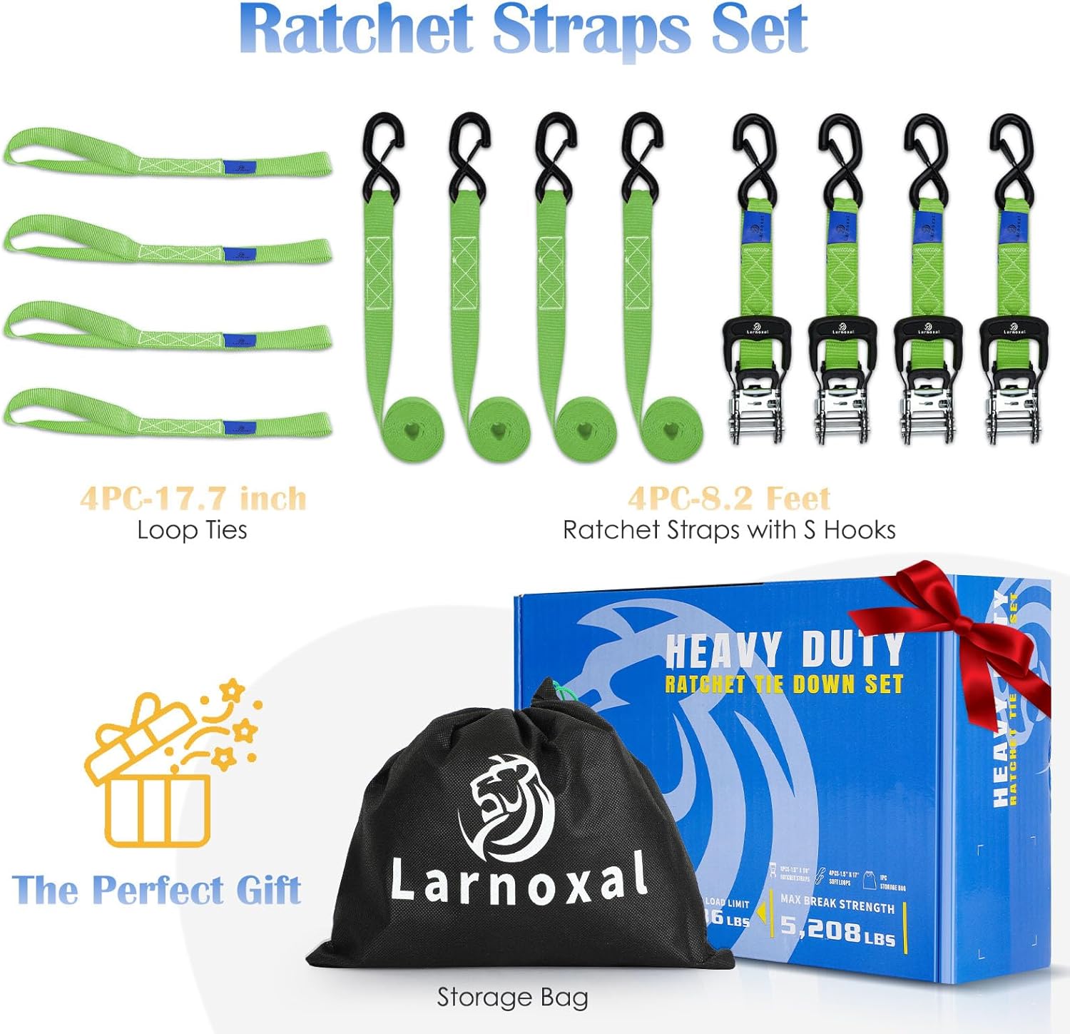 - 【Heavy-Duty Ratchet Straps】Built to withstand extreme conditions, our 1.5-inch wide, 8.2-feet long ratchet straps feature 5,208 lbs breaking strength. Ideal for trucks, vans, trailers, motorcycles, ATVs, boats, and moving furniture, ensuring cargo stays in place and preventing shifting or damage.
