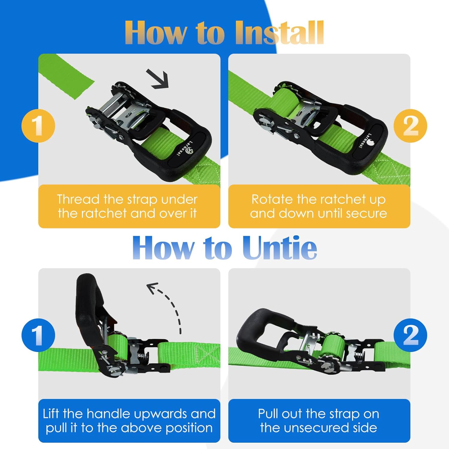 - 【Secure Fastening】The heavy duty ratchet straps set provides consistent tension, keeping your load firmly in place during transport. Designed for quick operation, it allows for easy tightening and release with just one hand, making it effortless even for beginners while saving time and effort.