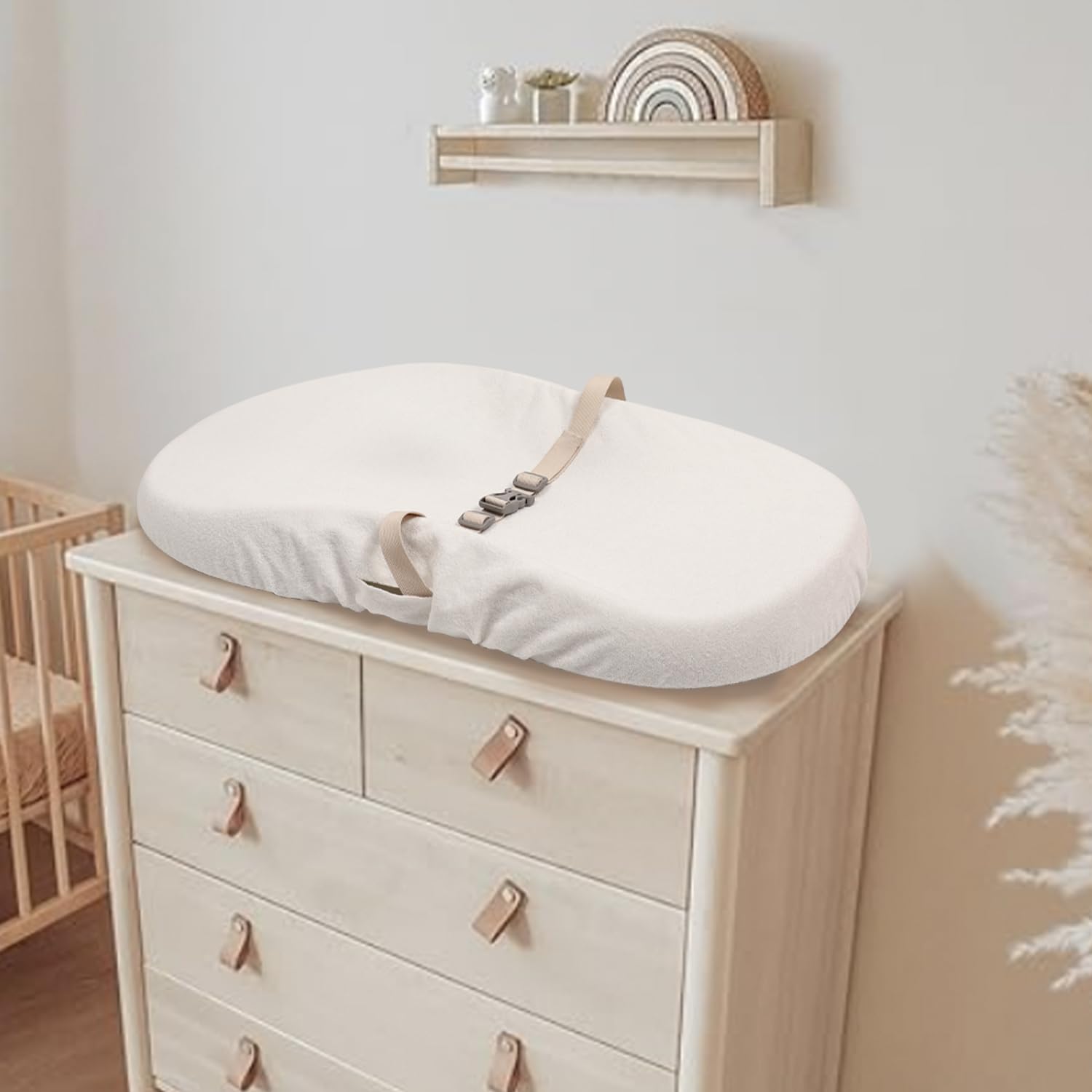 - Universal Fit for Popular Brands – Designed to securely fit 16”x35"contoured changing pads like Skip Hop,Keekaroo Peanut, and Evolur Eva.Elastic edges and buckle-friendly holes keep the cover snugly in place during active baby moments.Say goodbye to slipping covers during diaper changes