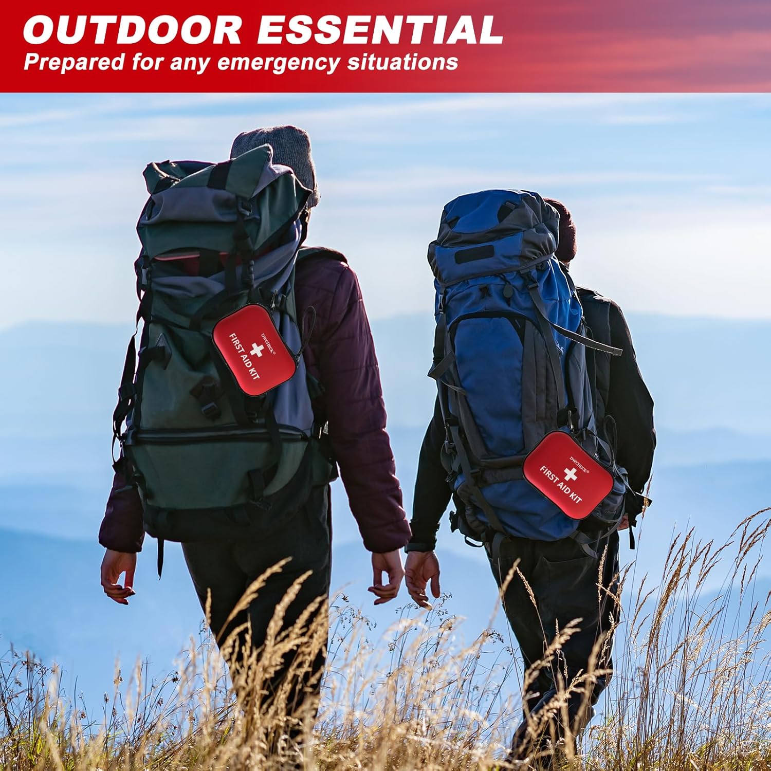 - COMPACT & PORTABLE:This mini first aid kit measures 6.69 x 5.51 inches (17 x 14 cm) and weighs 0.66 lbs (300 g). Our compact medical kit comes with a sturdy carabiner makes it easy to carry and hung on your backpack. A must-have travel gear item for camping, outdoor emergencies, hiking, or survival situations.