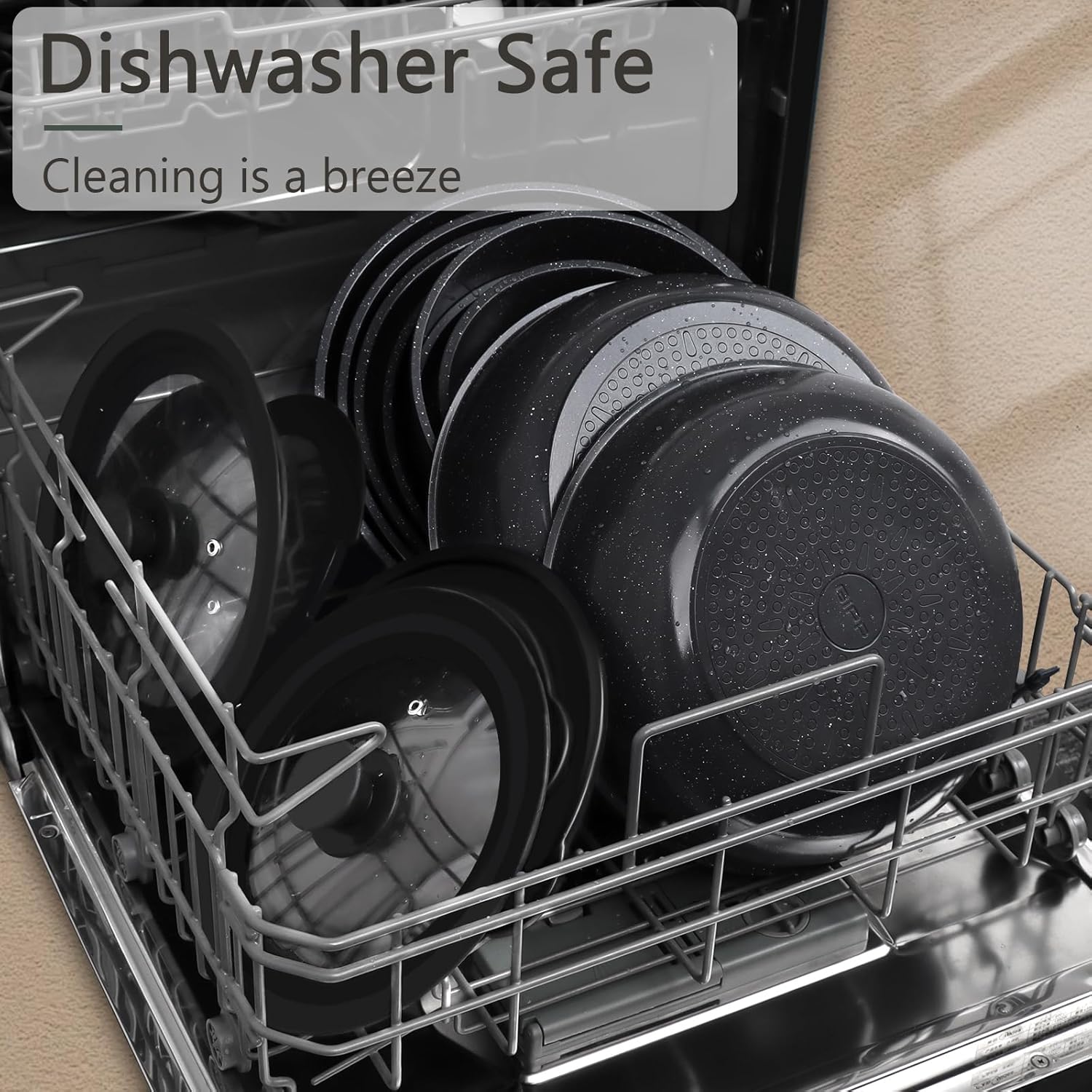- Healthy Ceramic Coating - Made with 100% non-toxic ceramic nonstick coating, free from PFOA, PFAS, PTFE, lead, and cadmium. Enjoy healthier cooking with ceramic pots and pans set