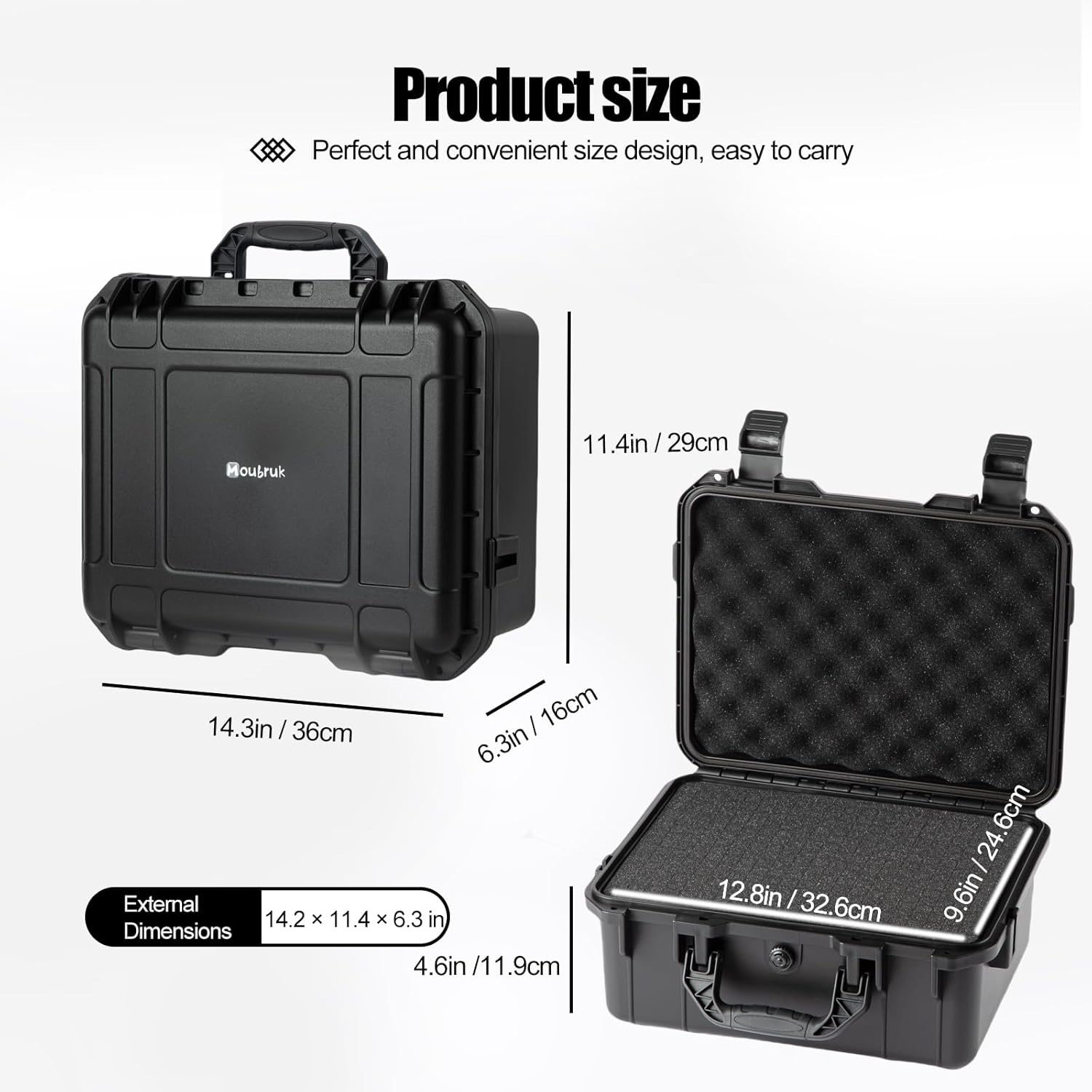 small Hard case Waterproof Hard Case with DIY Customizable Foam Insert Portable Protective Case with Knife for Camera Drones Equipments Tools Test Instruments 14.2''x11.4''x6.3''