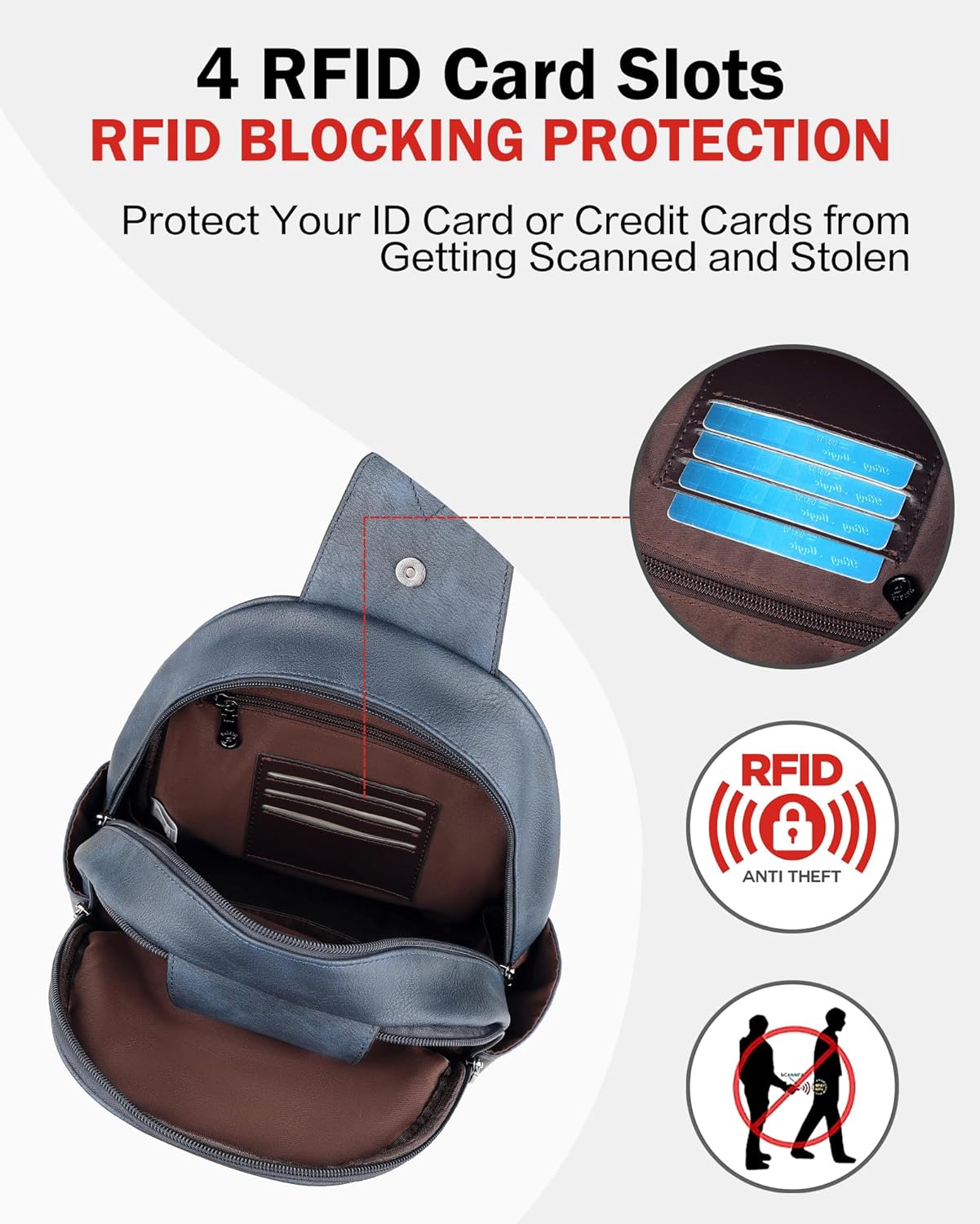 FADEON Large Sling Bag for Women, Leather Crossbody Purse Designer Anti Theft Sling Backpack, RFID Fanny Packs for Travel