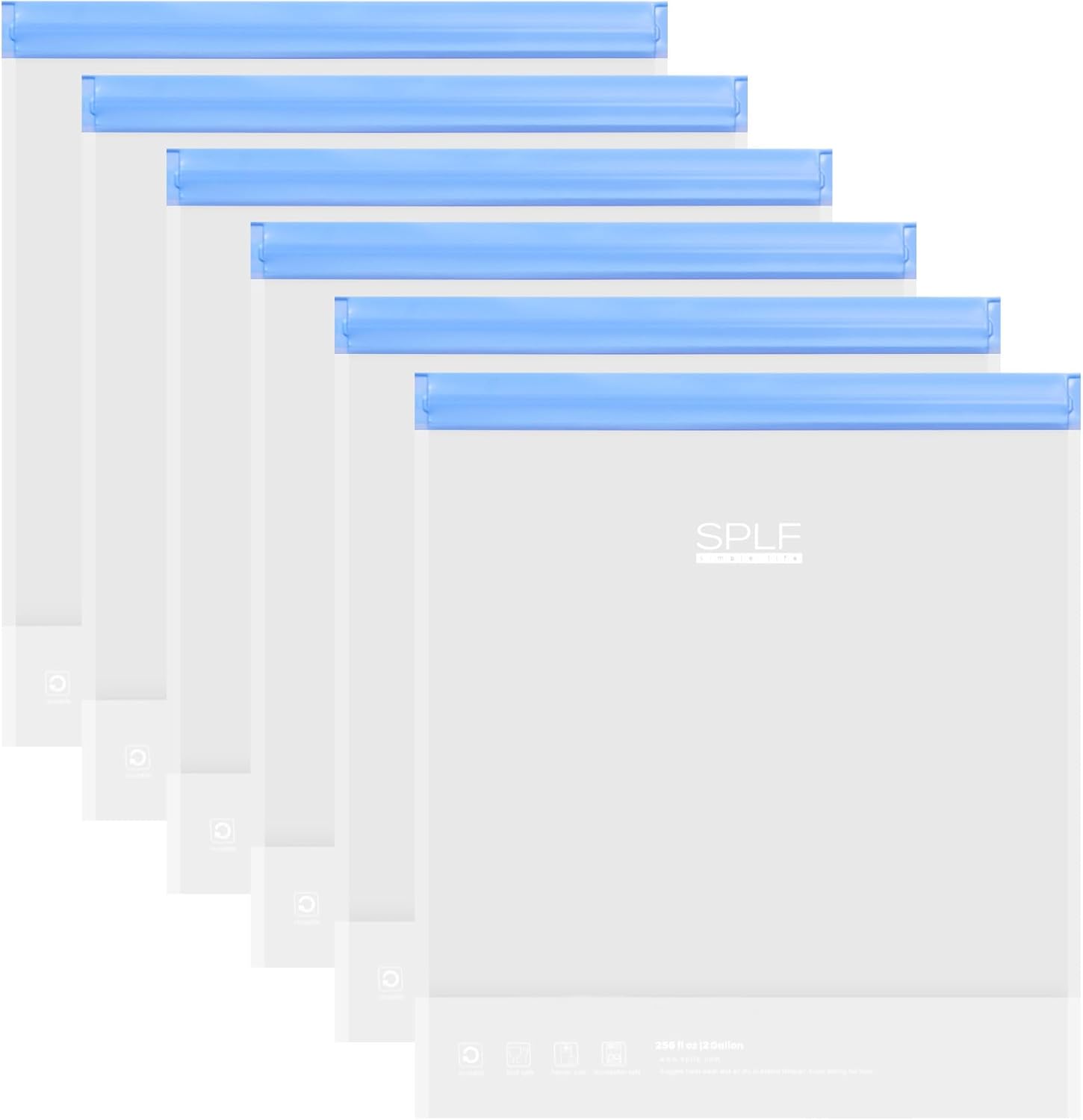 - 100% Satisfaction & Versatile: Set contains 6 pcs 2 gallon reusable baggies with size 13" W x 15.6"H, collapsible and stand up design makes them perfect containers for food storage (meal prep, soup, snack pouches, etc), home items & kitchen organization (cosmetics, jewelry, stationery etc), travel storage bags (make-up, travel toiletries, etc), camping and more in home, office and outdoor. Back with SPLF 100% satisfaction servie, buy with confidence.