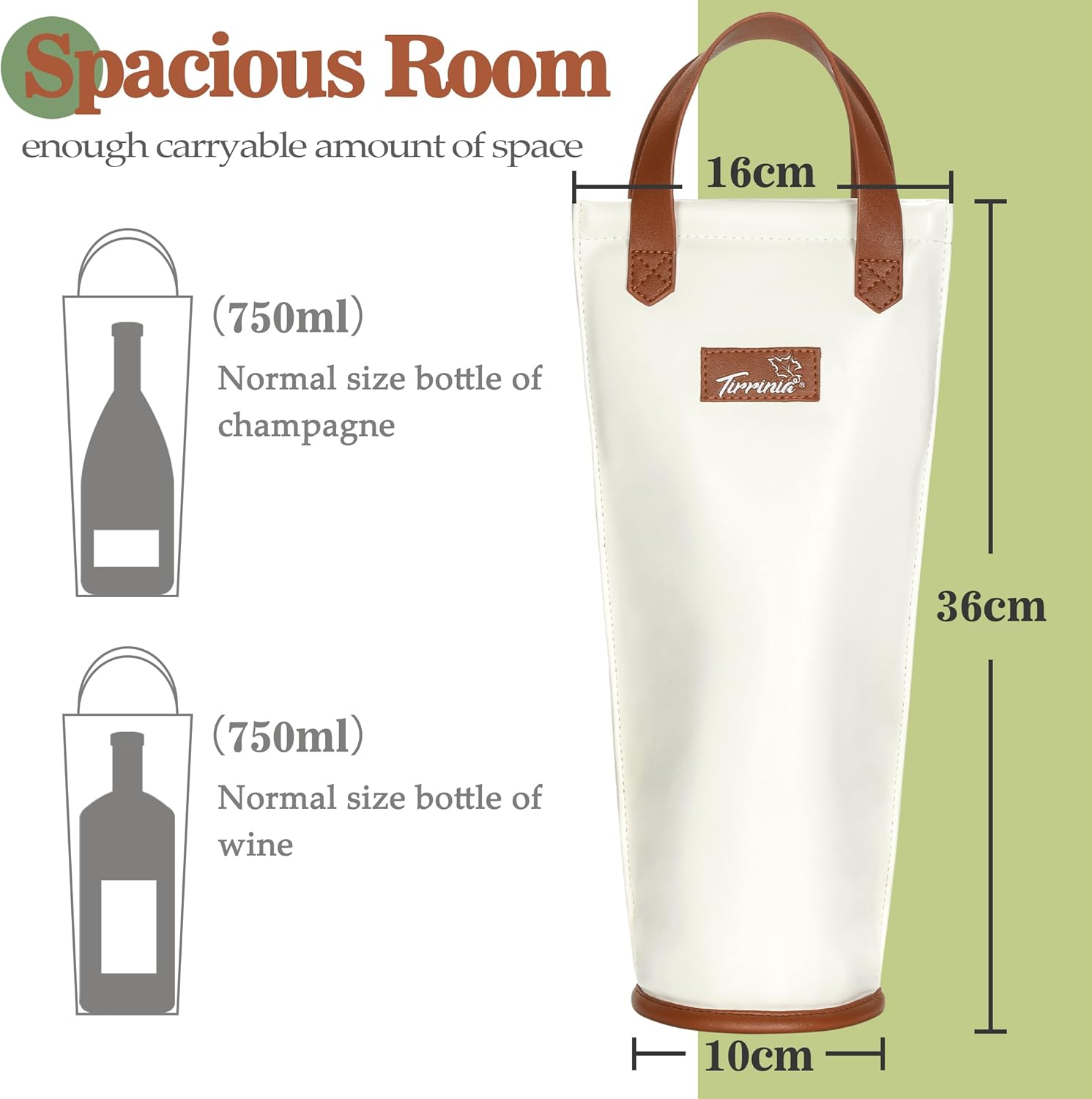 Tirrinia Single Wine Carrier Tote, Insulated Wine Cooler Bag for Travel, Picnic, & Wine Gifts – Thermal Padded Wine Bottle Holder Tote for Men & Women, Wine Gift for Wine Lovers,White Brown